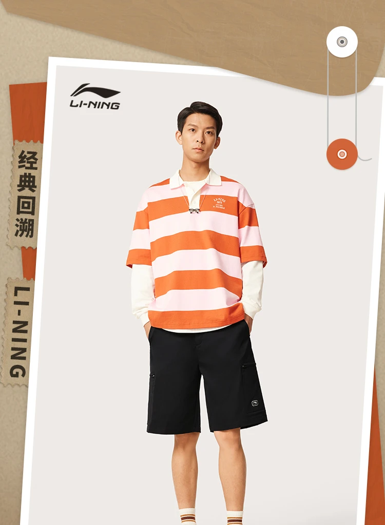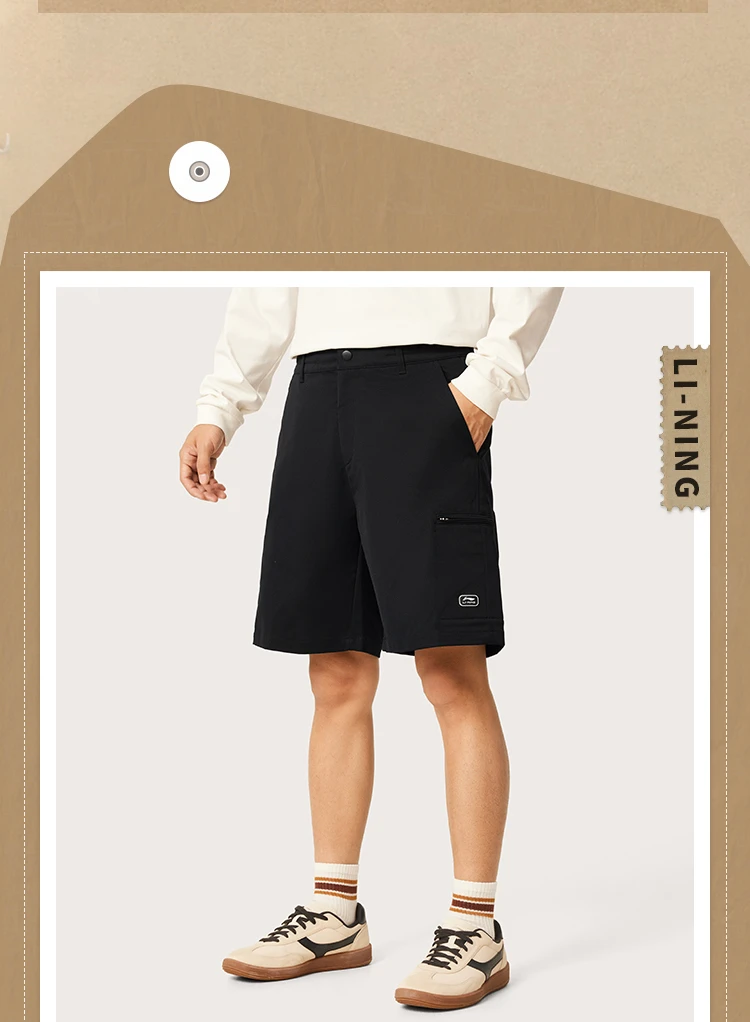 李宁男子防泼水工装多袋短裤休闲短裤AKSV461