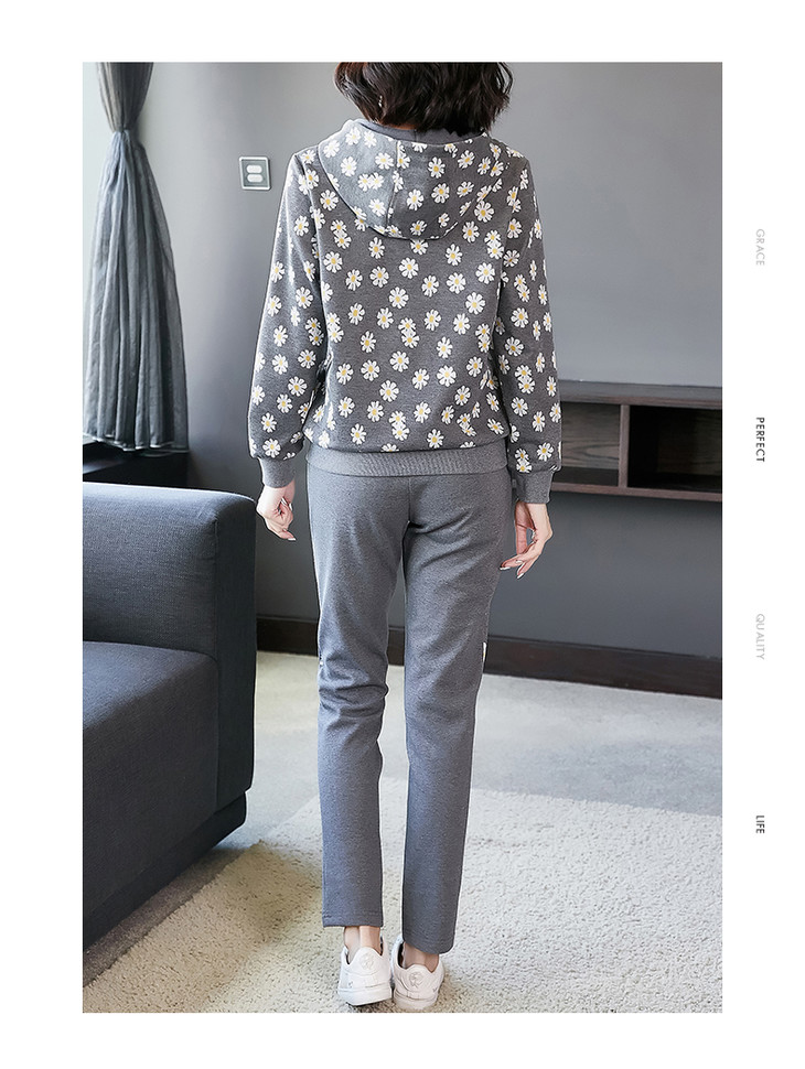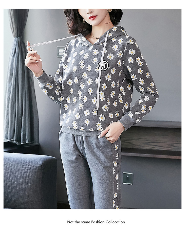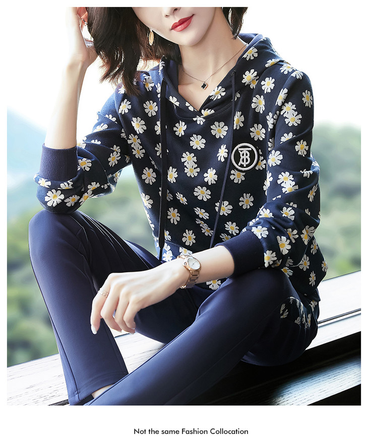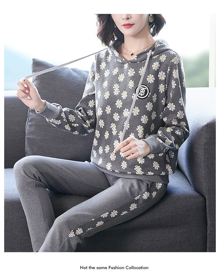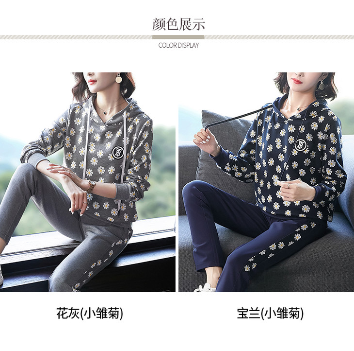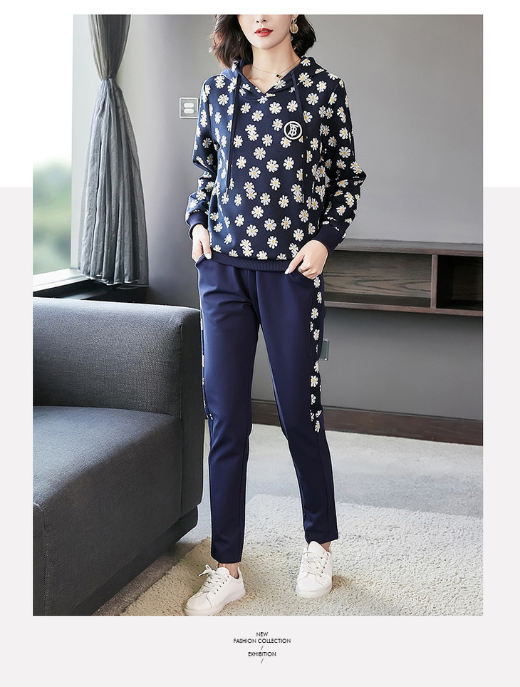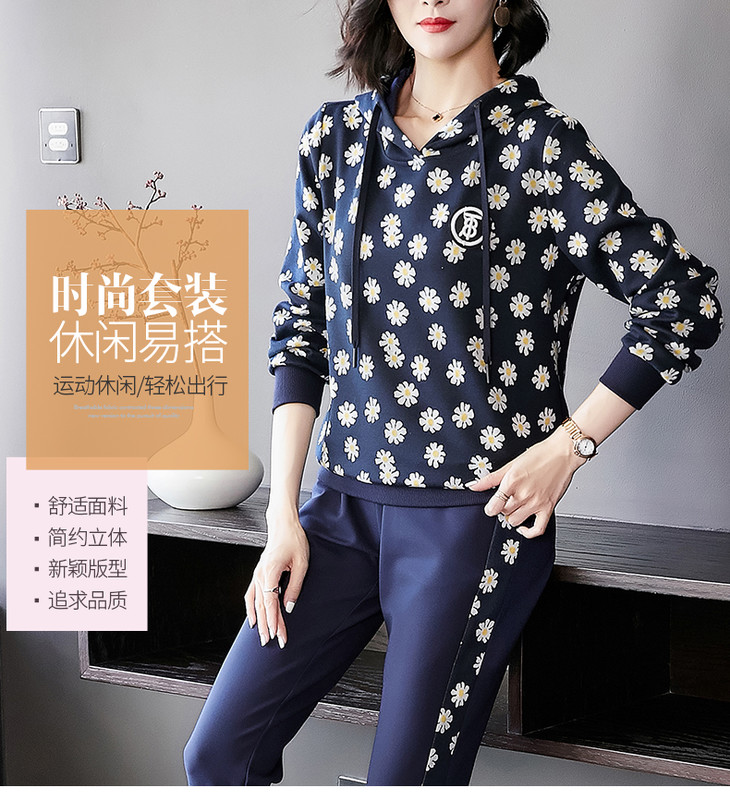 SP7220C131新款时尚洋气印花连帽卫衣休闲裤两件套