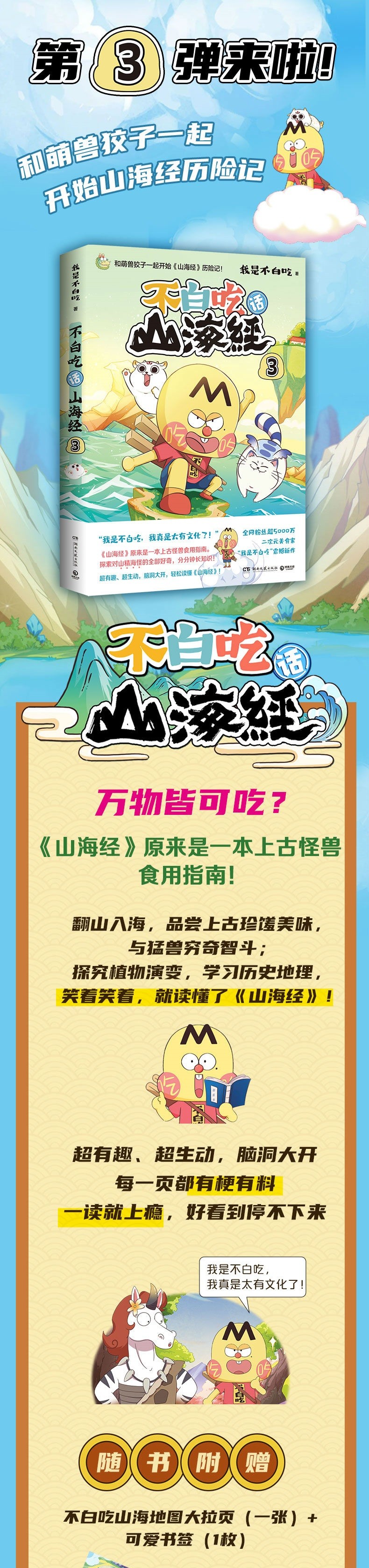 3. 不白吃和萌兽狡子一起开始《山海经》历险记,从西山经到北山经探险12座名山,广结好友,与猛兽穷奇智斗,探究植物演变,详细讲述30多种动植物,学习历史地理,探索对山精海怪的全部好奇,分分钟长知识!