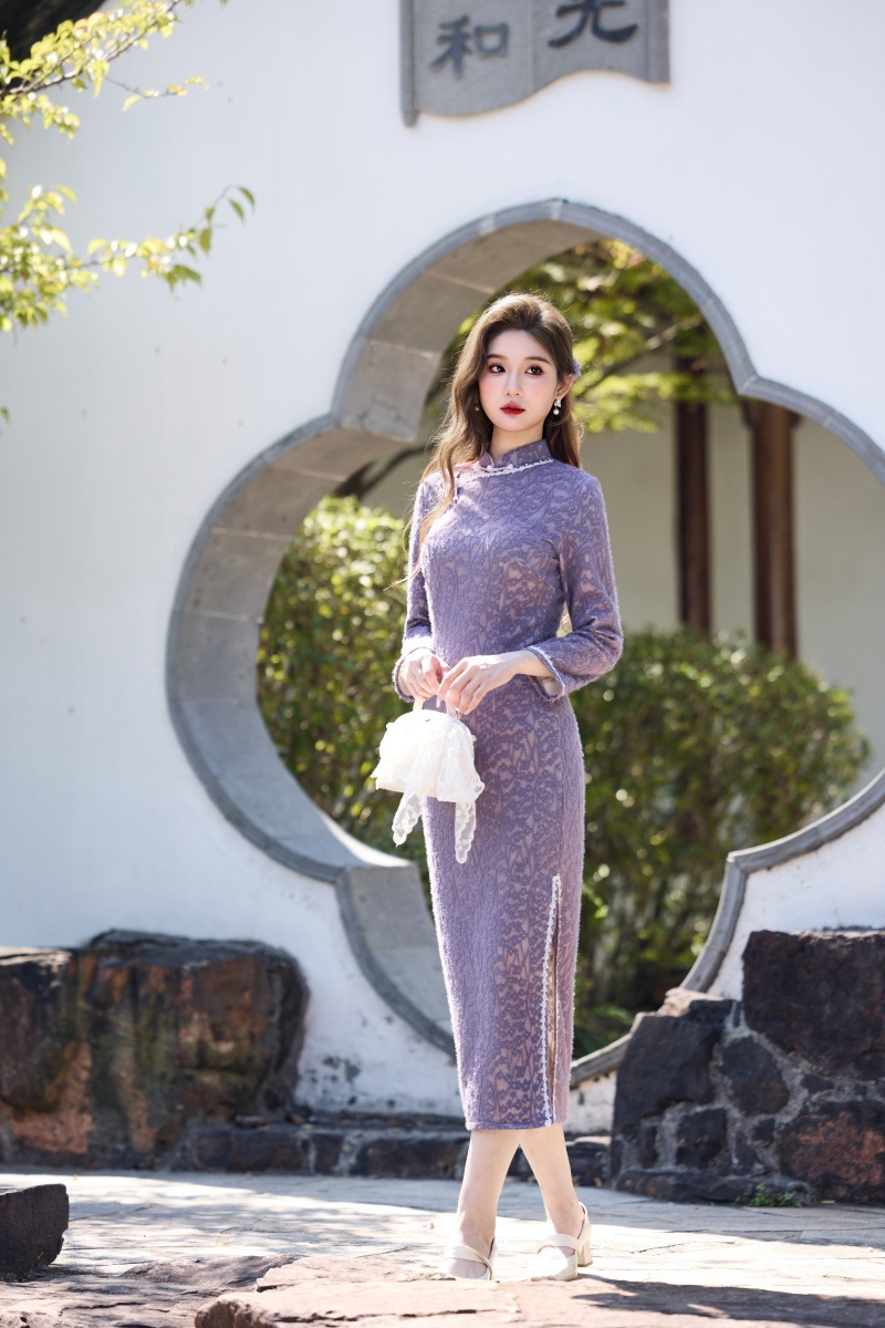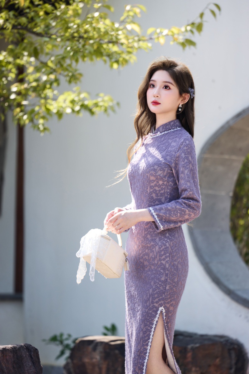 FR绝美新中式旗袍2025新款高端国风秋冬旗袍气质优雅老上海紫色旗袍