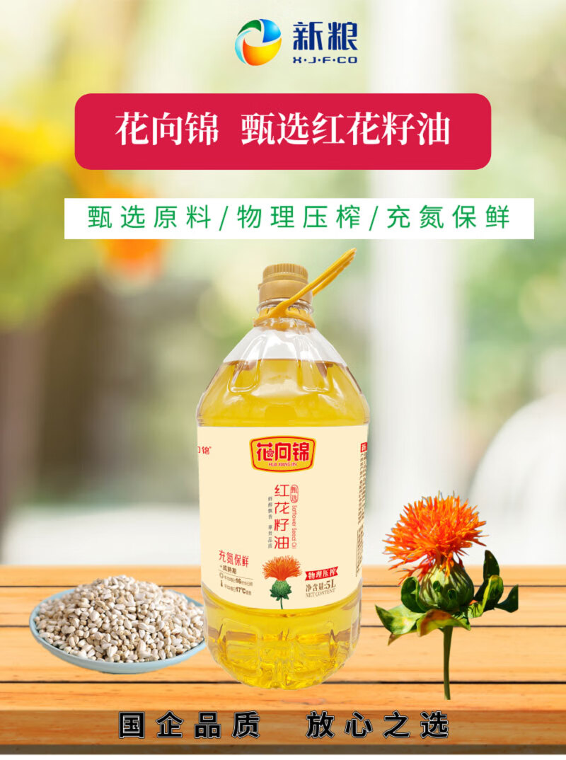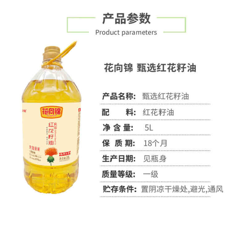 花向锦·甄选红花籽油5L 适合凉拌、低温烹饪,口感清淡不油腻