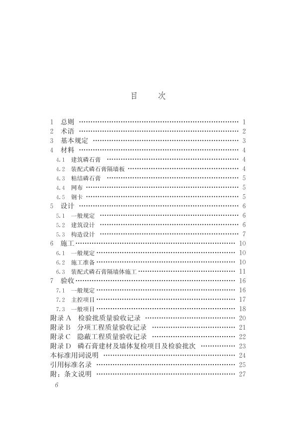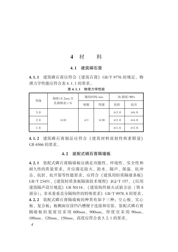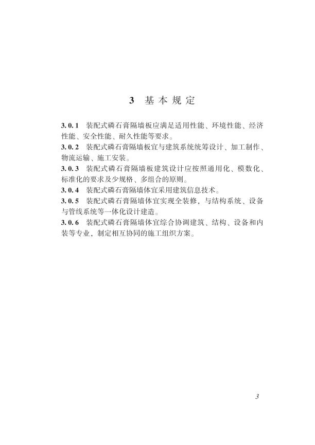 为规范装配式磷石膏隔墙体的构造设计、施工与质量验收,做到技术先进、安全可靠、经济合理,制定本标准。本标准适用于装配式磷石膏隔墙体的构造设计、施工与质量验收。装配式磷石膏隔墙体的构造设计、施工与质量验收除应符合本标准外,尚应符合国家现行有关标准的规定。本标准的主要技术内容包括:1.总则;2.术语;3.基本规定;4.材料;5.设计;6.施工;7验收。3.0.1 装配式磷石膏隔墙板能满足适用性能、环境性能、经济性能、安全性能、耐久性能等要求