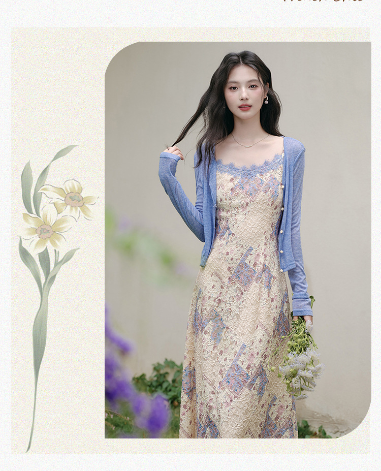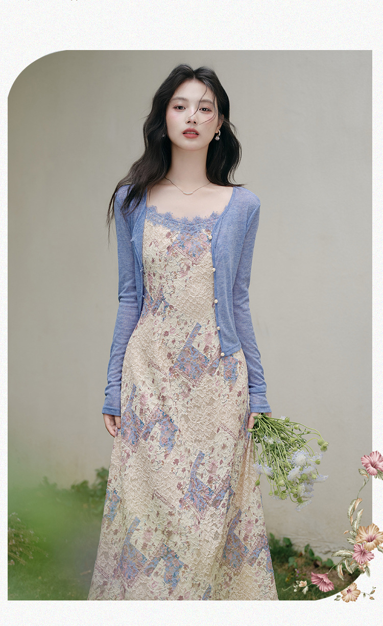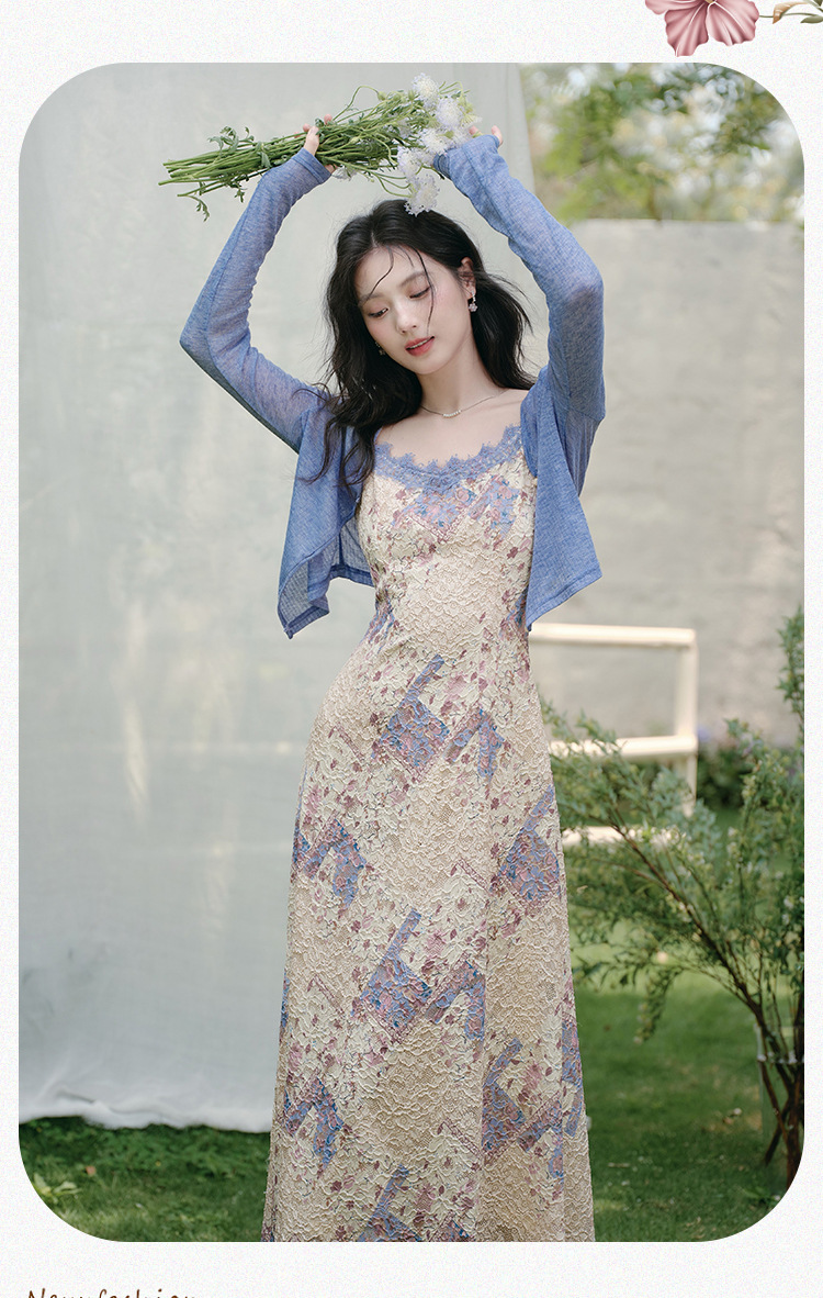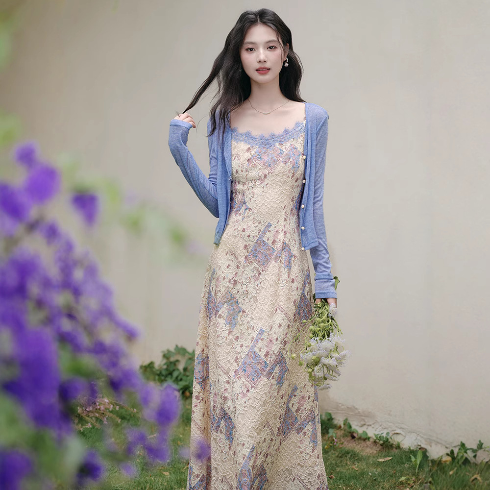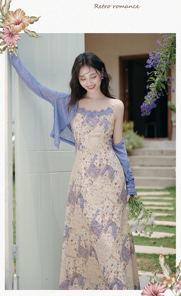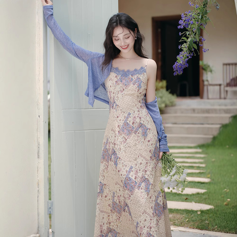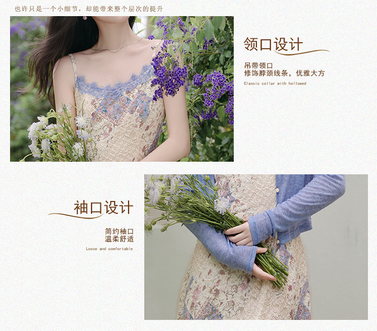 2025夏法式复古花边度假仙女气质显瘦吊带裙连衣裙超仙纯欲茶系