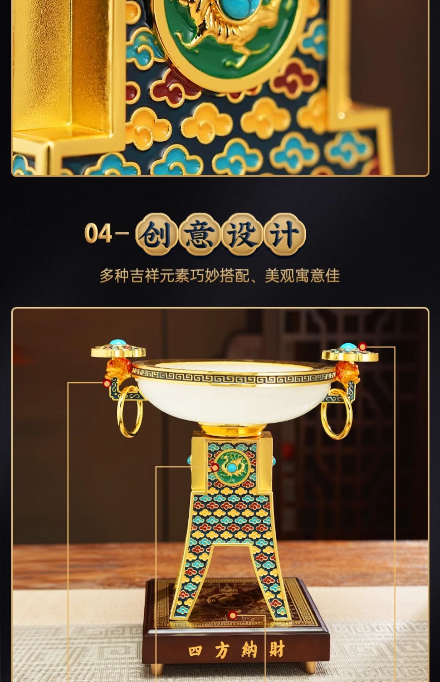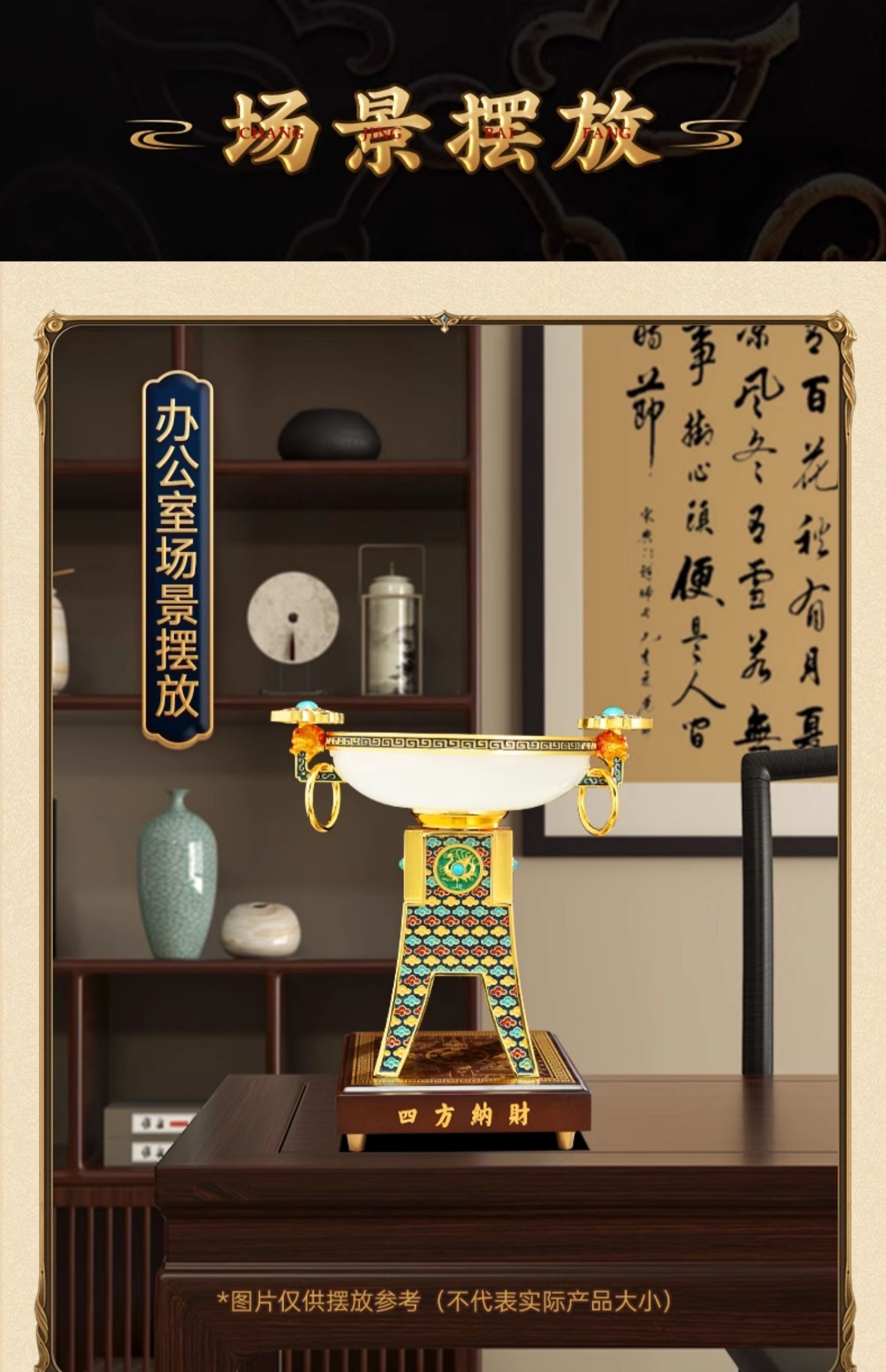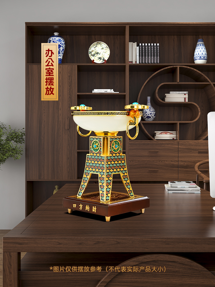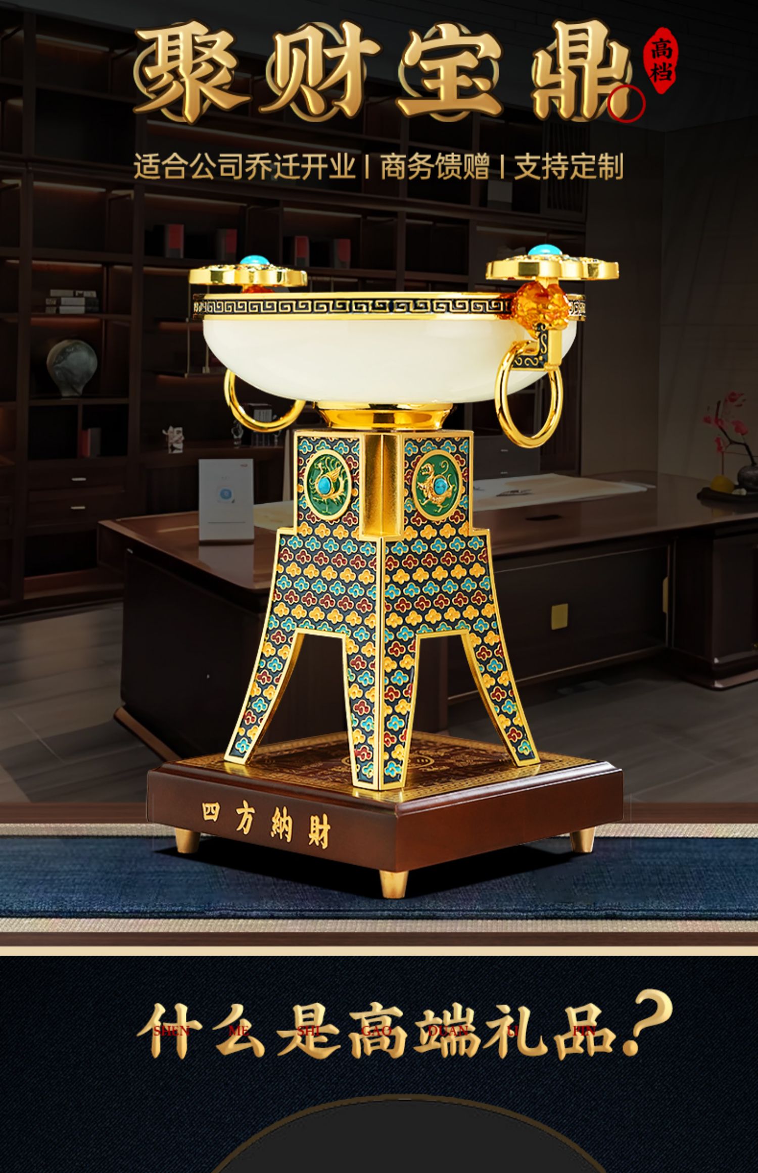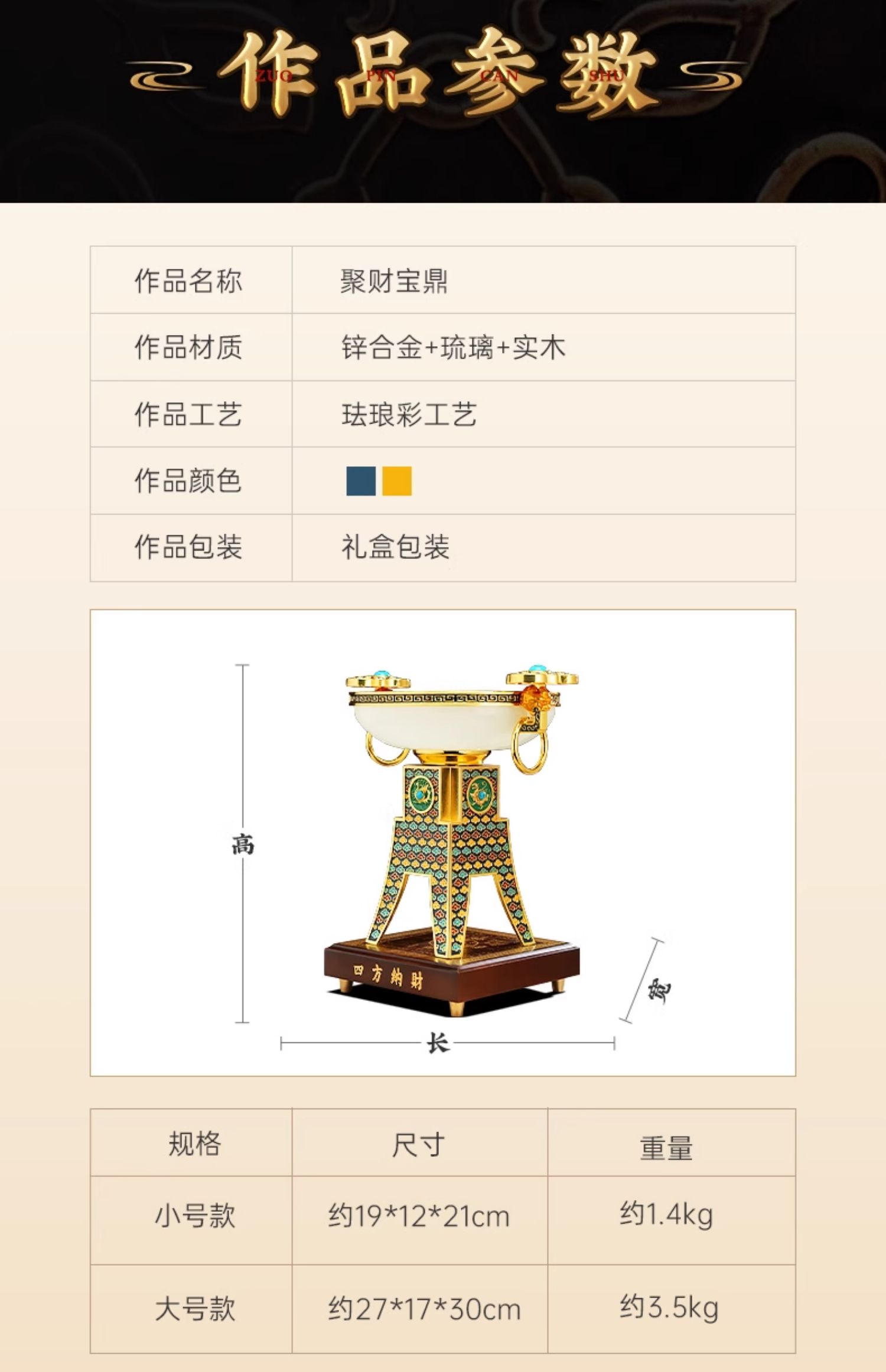 【彼达思】四方纳财 聚财宝鼎 景泰蓝色 商务送礼办公摆件