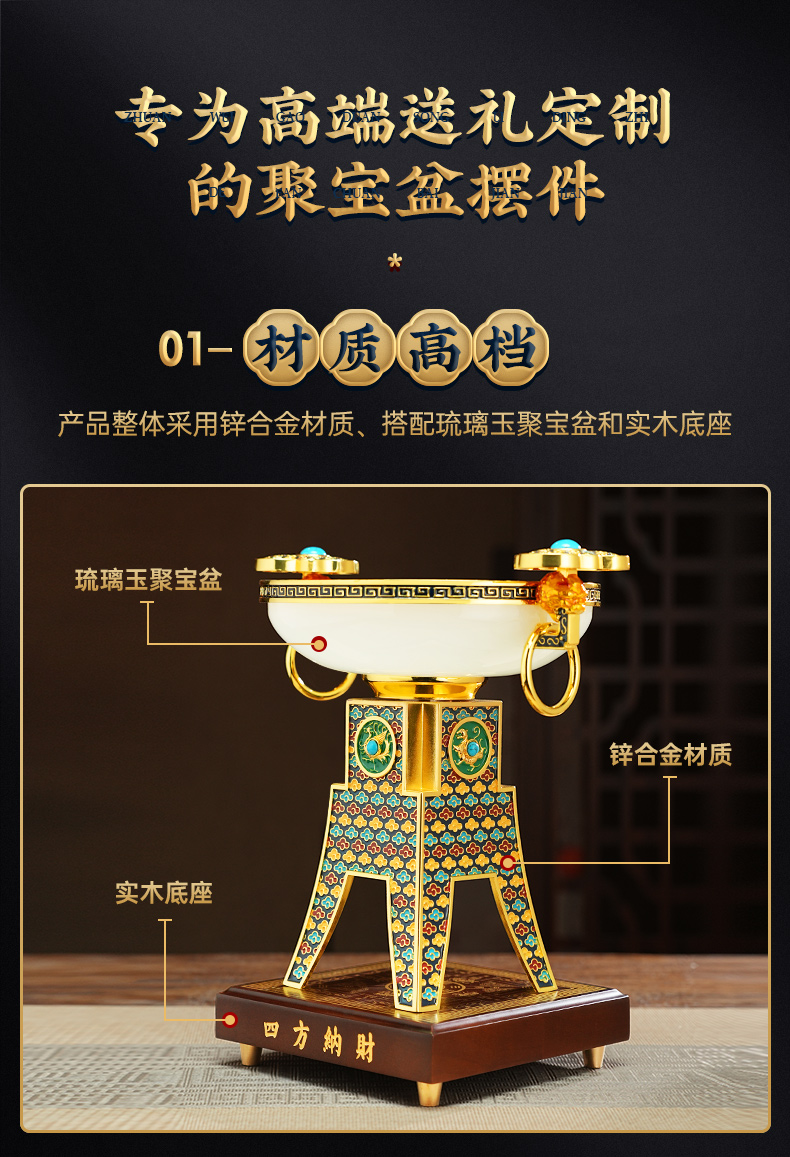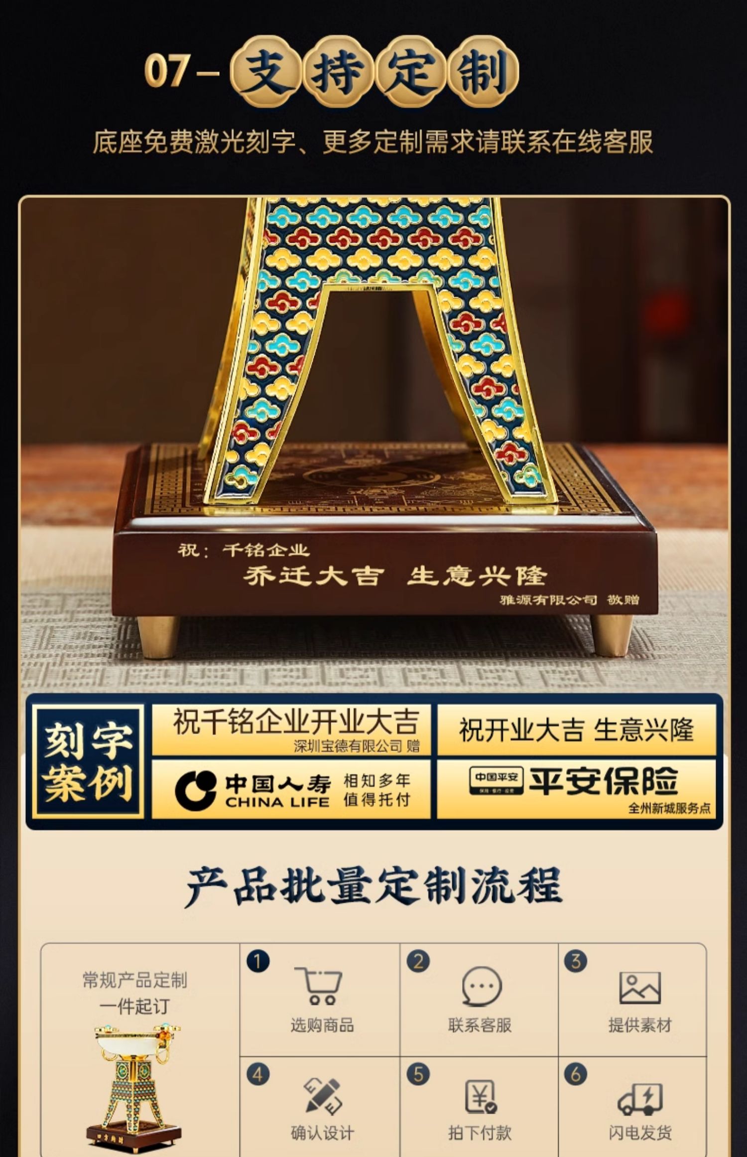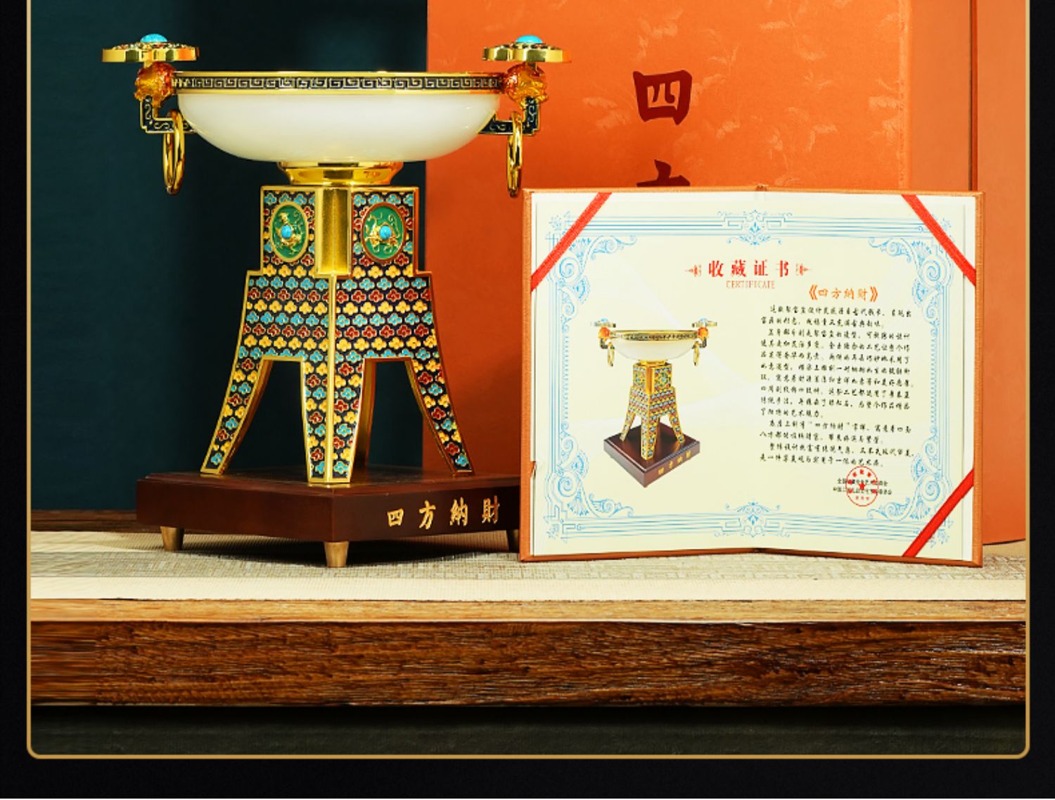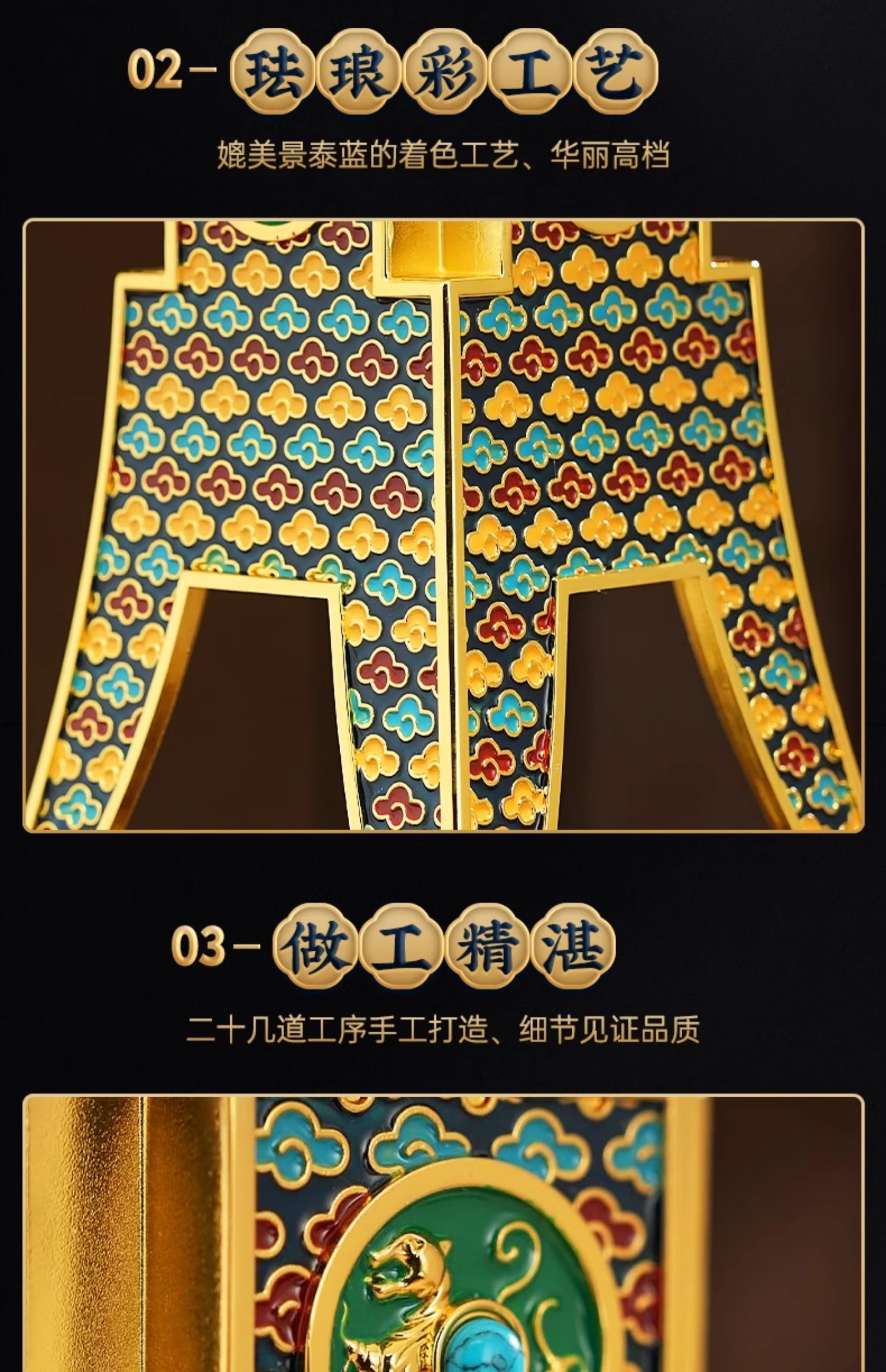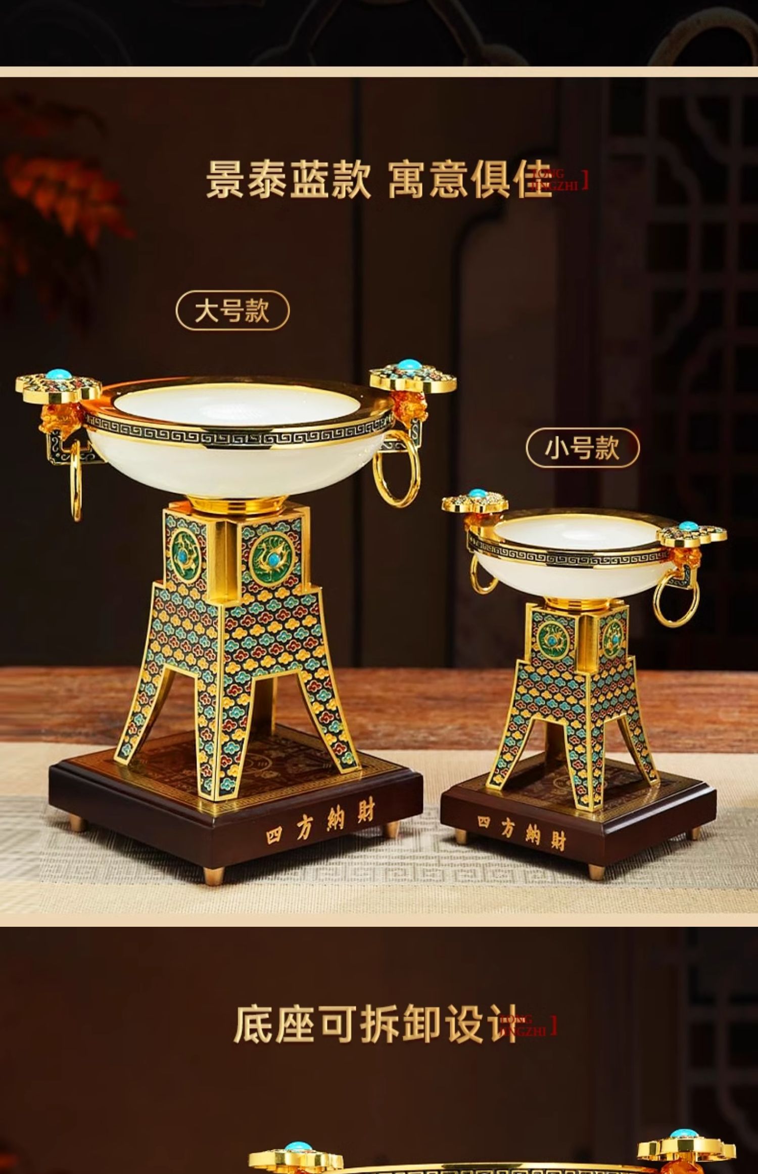 【彼达思】四方纳财 聚财宝鼎 景泰蓝色 商务送礼办公摆件