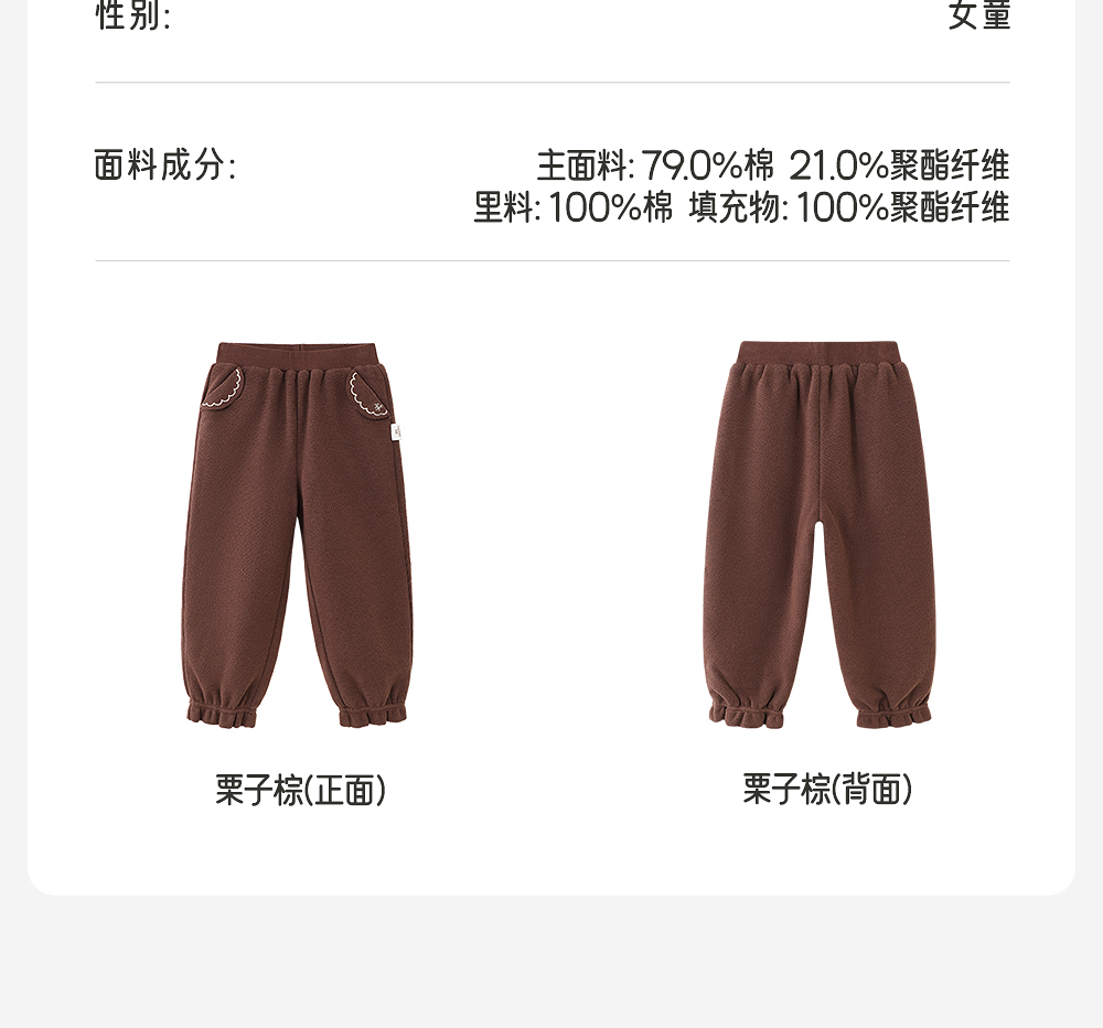 【商场同款】英氏女童长裤秋冬束脚裤保暖防寒儿童女孩舒适新款