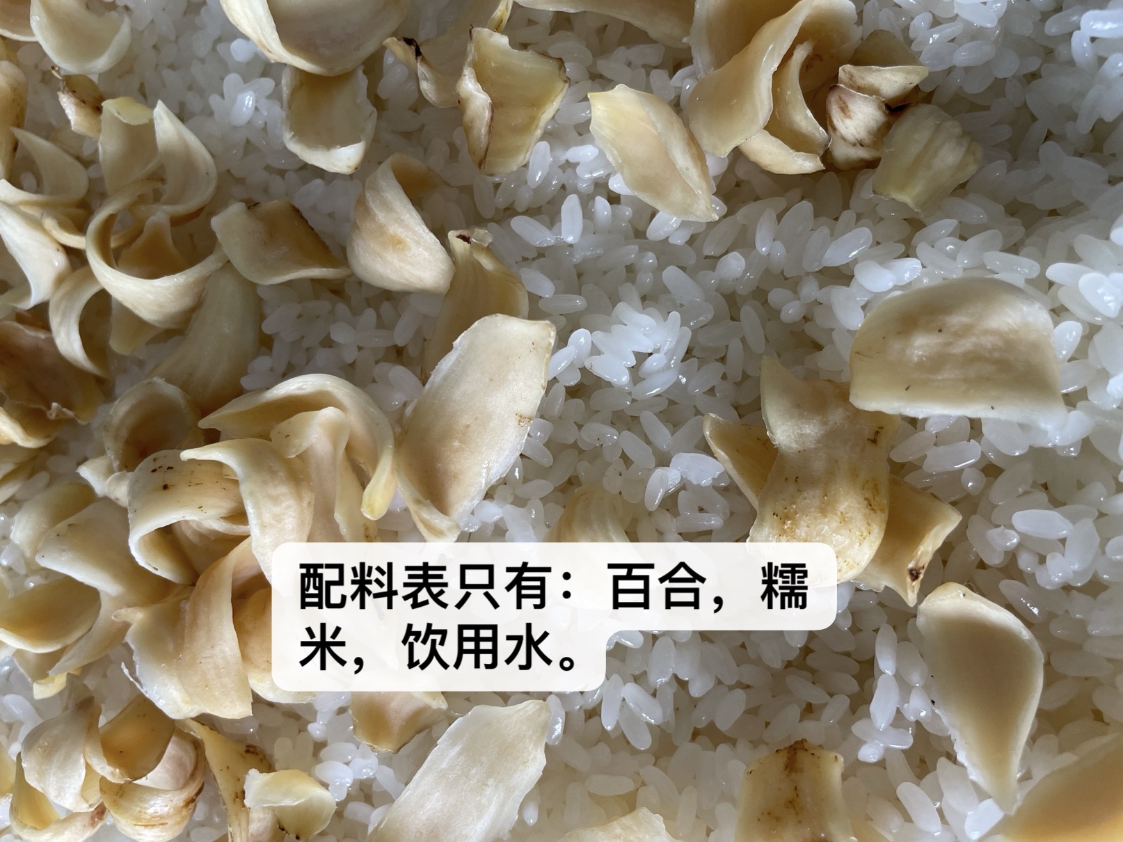 零添加‼没有任何科技与狠活。配料表只有:糯米,百合粉,饮用水