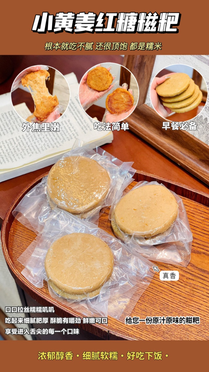 继百合糍粑后的,又出惊艳新品,驱寒暖胃适合四季!高山小黄姜+古法红糖➕当季糯米一起蒸,蒸出精华、留住营养!驱寒暖胃,煎、炸、空气炸锅更是外酥里糯!
