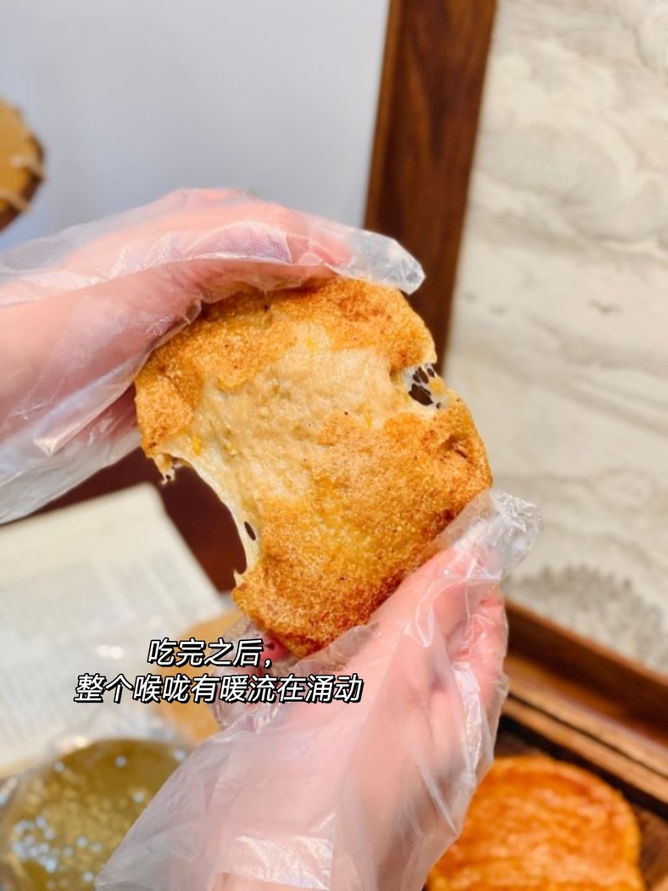有客瑶来糍粑会魔术,加了红糖和小黄姜🫚,蓬松感和软糯度竟可并驾齐驱!表皮很酥脆好像焦糖般迷人!内心糯叽叽吃完喉咙暖洋洋!无生姜渣却满是小黄姜的姜魂,不辛辣但实在是暖喉又暖心,红糖比例刚刚好,从此糍粑不用蘸白糖!