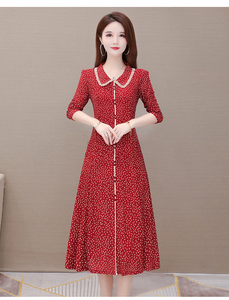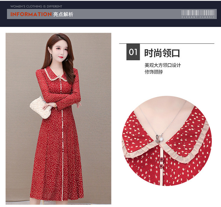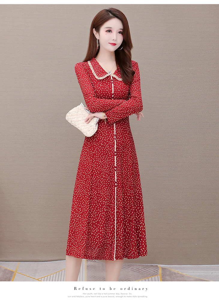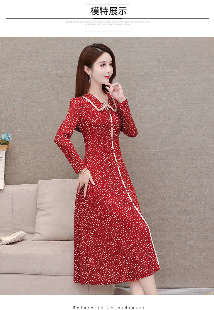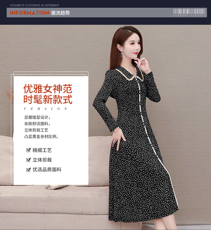 YW-JJ-JZ607时尚气质,娃娃领长袖中长款波点连衣裙