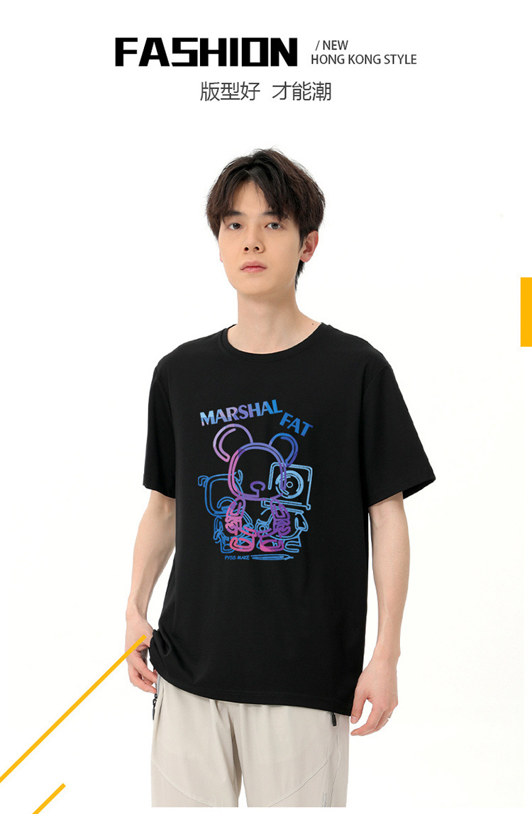 【冰氧棉】【DSK】大依优型大码短袖T恤潮牌设计感字母印花圆领加肥加大百搭体恤男士胖子上衣