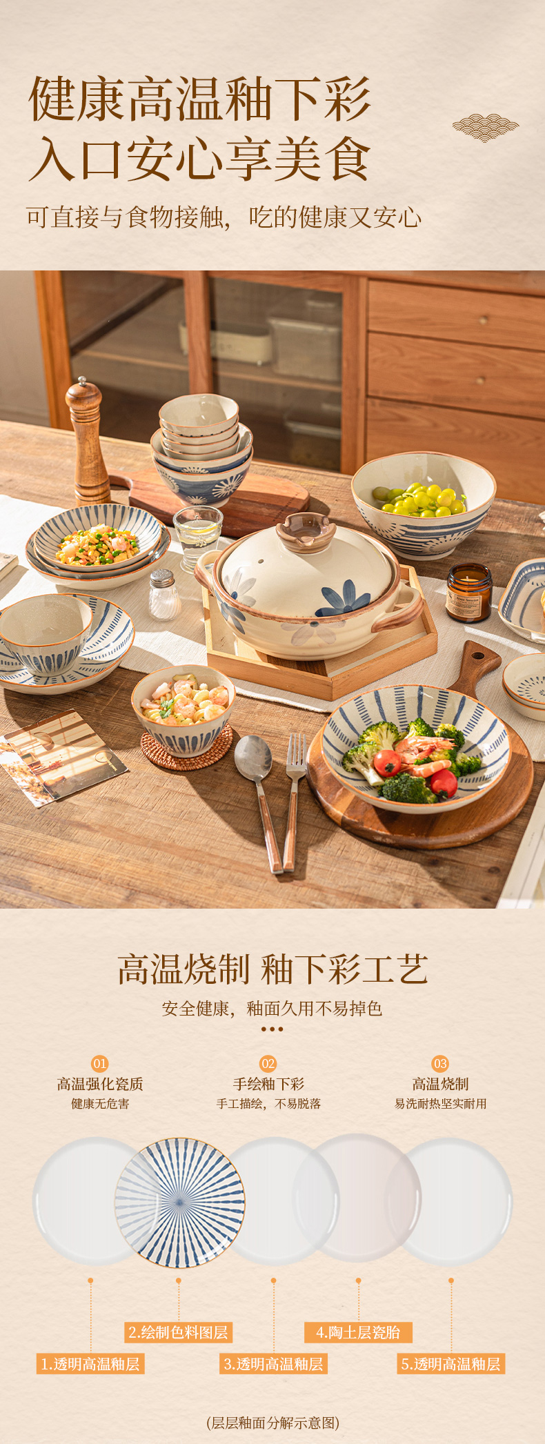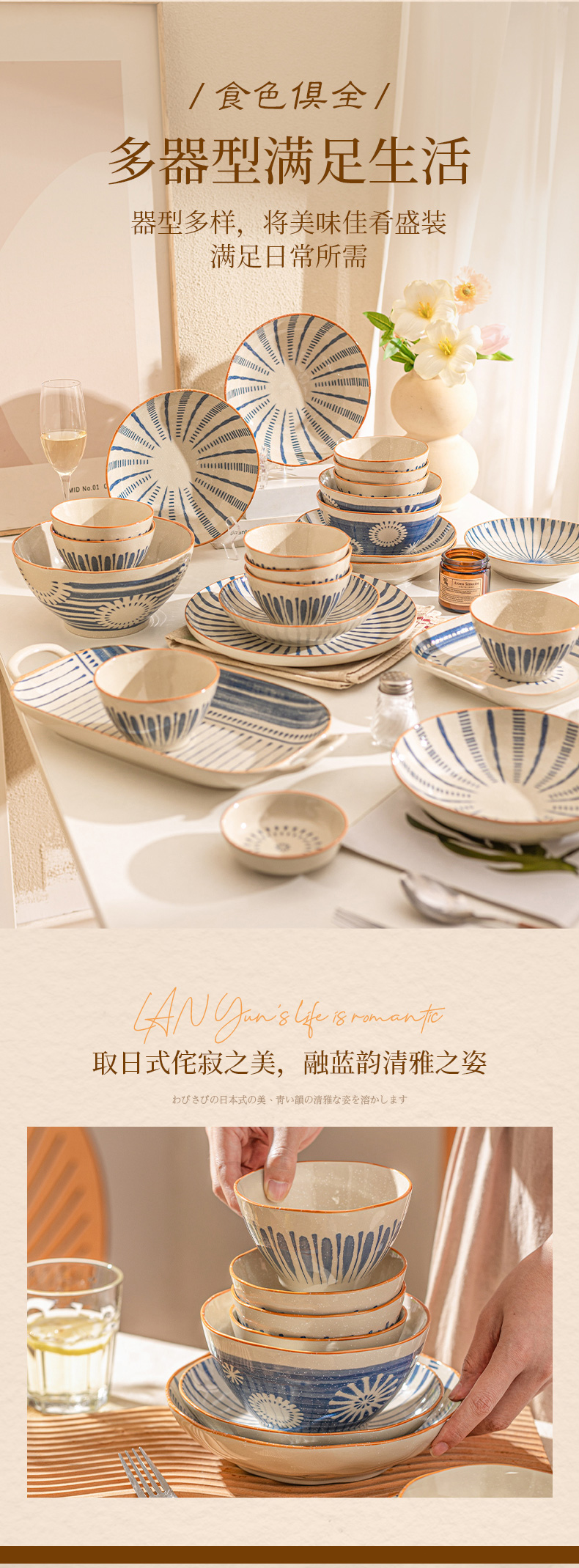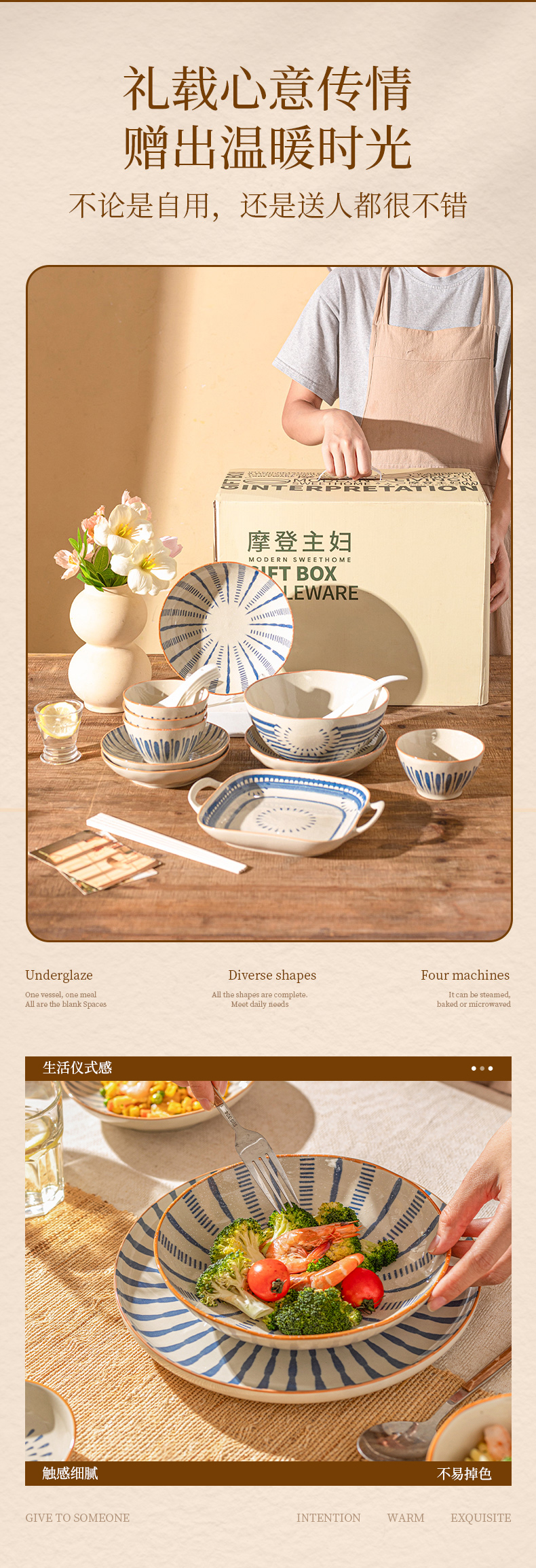 摩登主妇原创日式陶瓷碗碟套装家用饭碗沙拉碗意面碗组合高颜值餐具