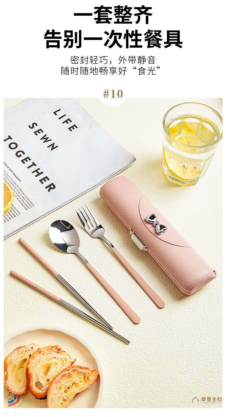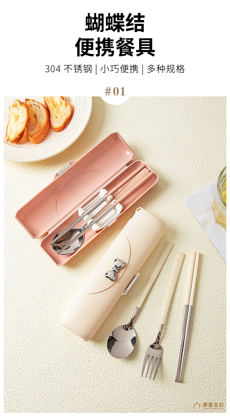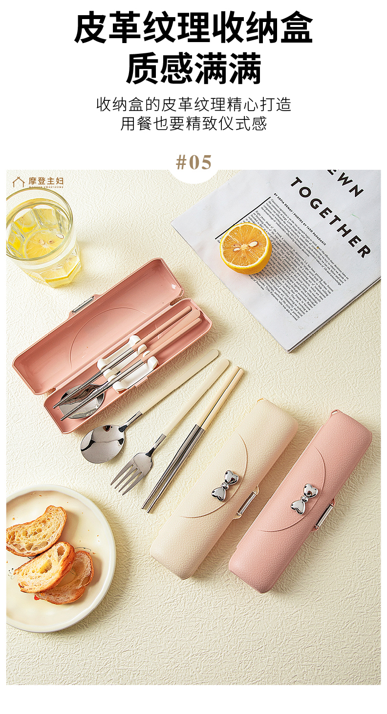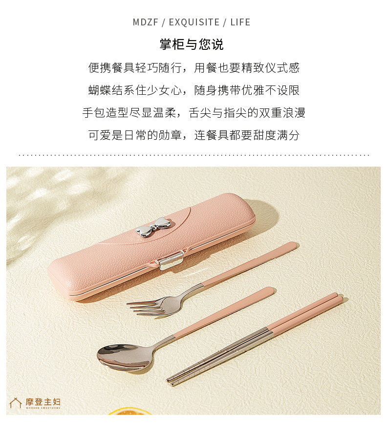 摩登主妇筷子勺子套装一人用学生便携餐具收纳盒单人装筷子便携盒