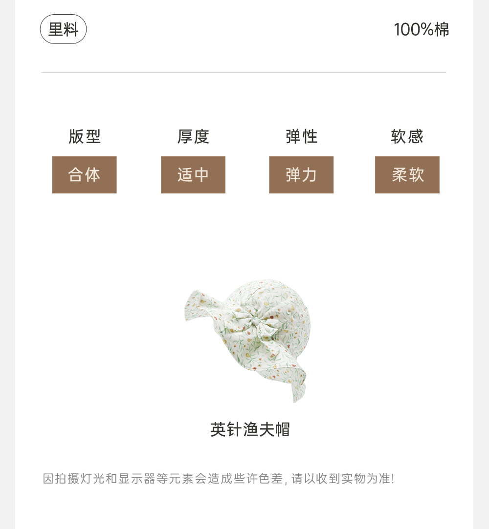 【商场同款】英氏儿童防晒帽四季遮阳渔夫帽女童透气帽子新款