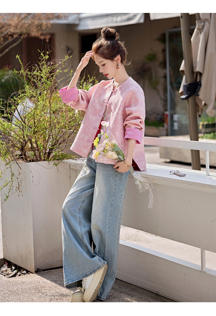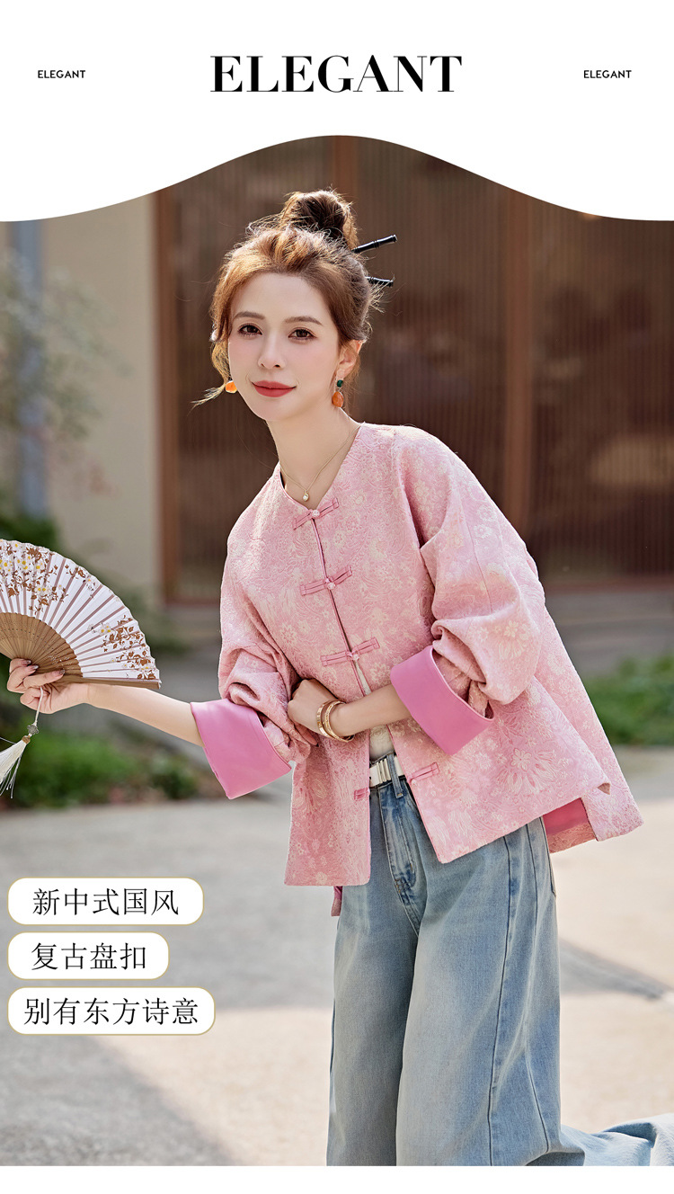 新中式提花料春装新款复古年轻款洋气显瘦上衣SYY2715
