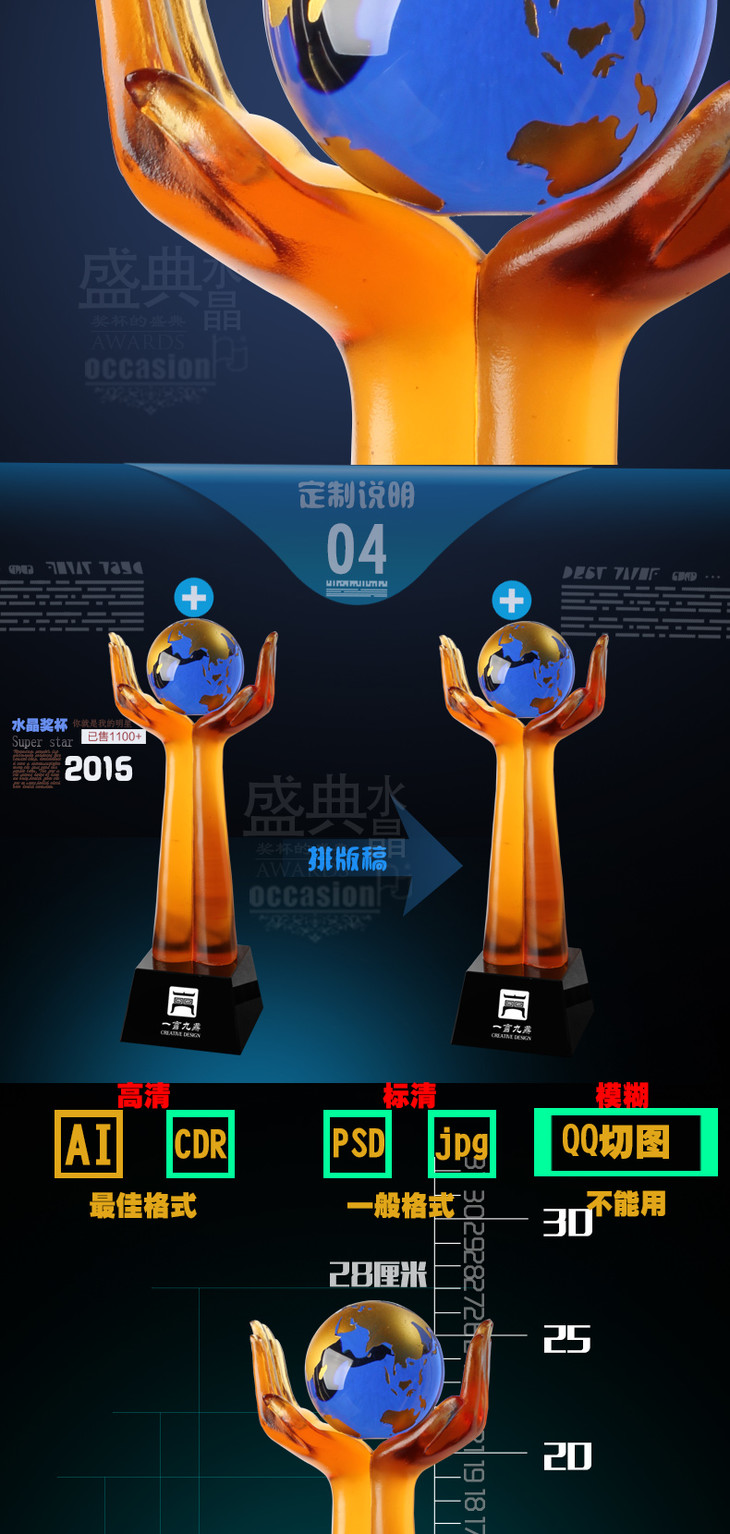 水晶奖杯创意金属五角星高档大气年会优秀员工颁奖纪念品