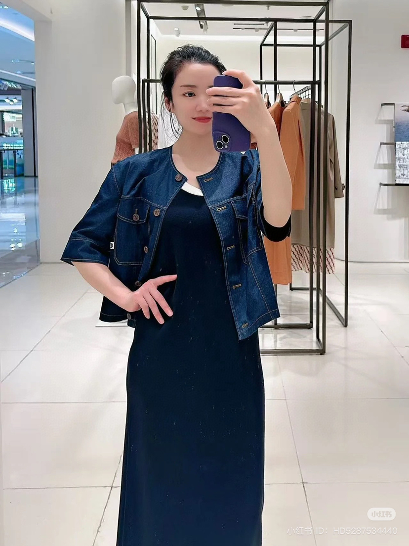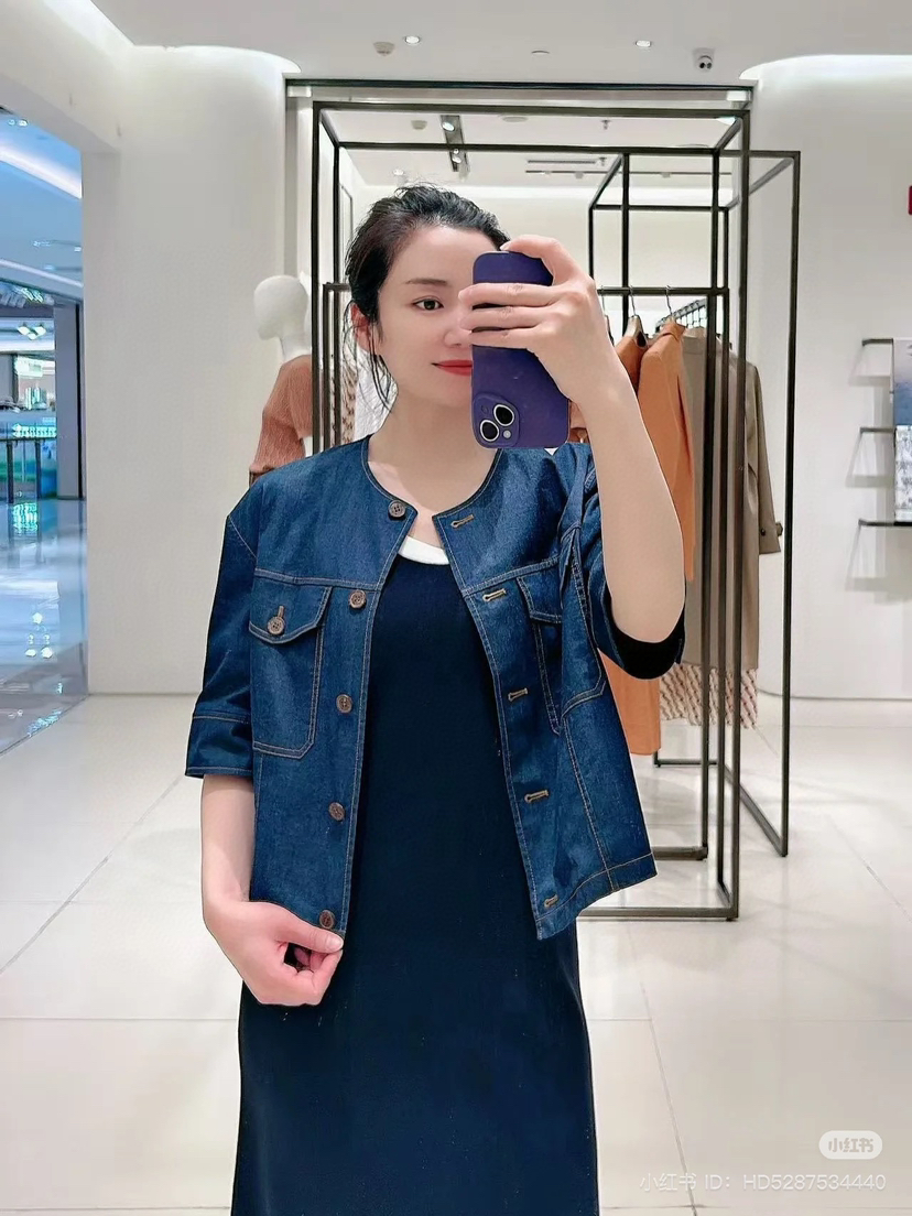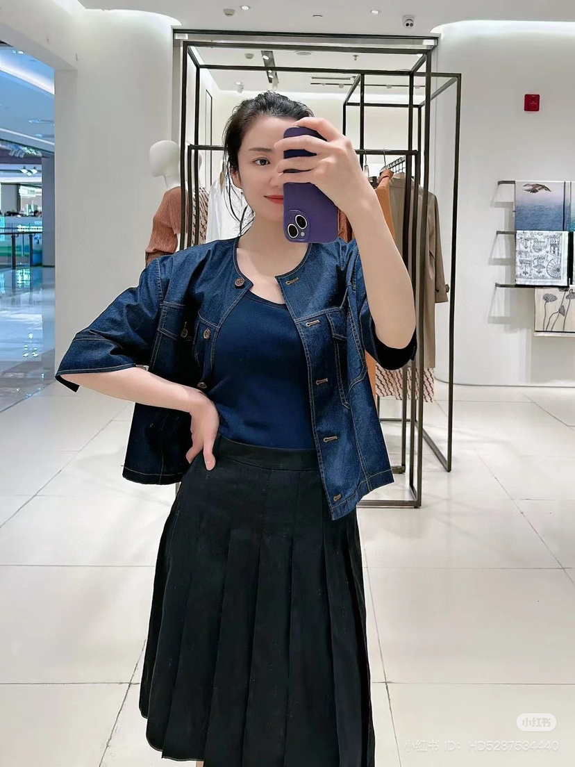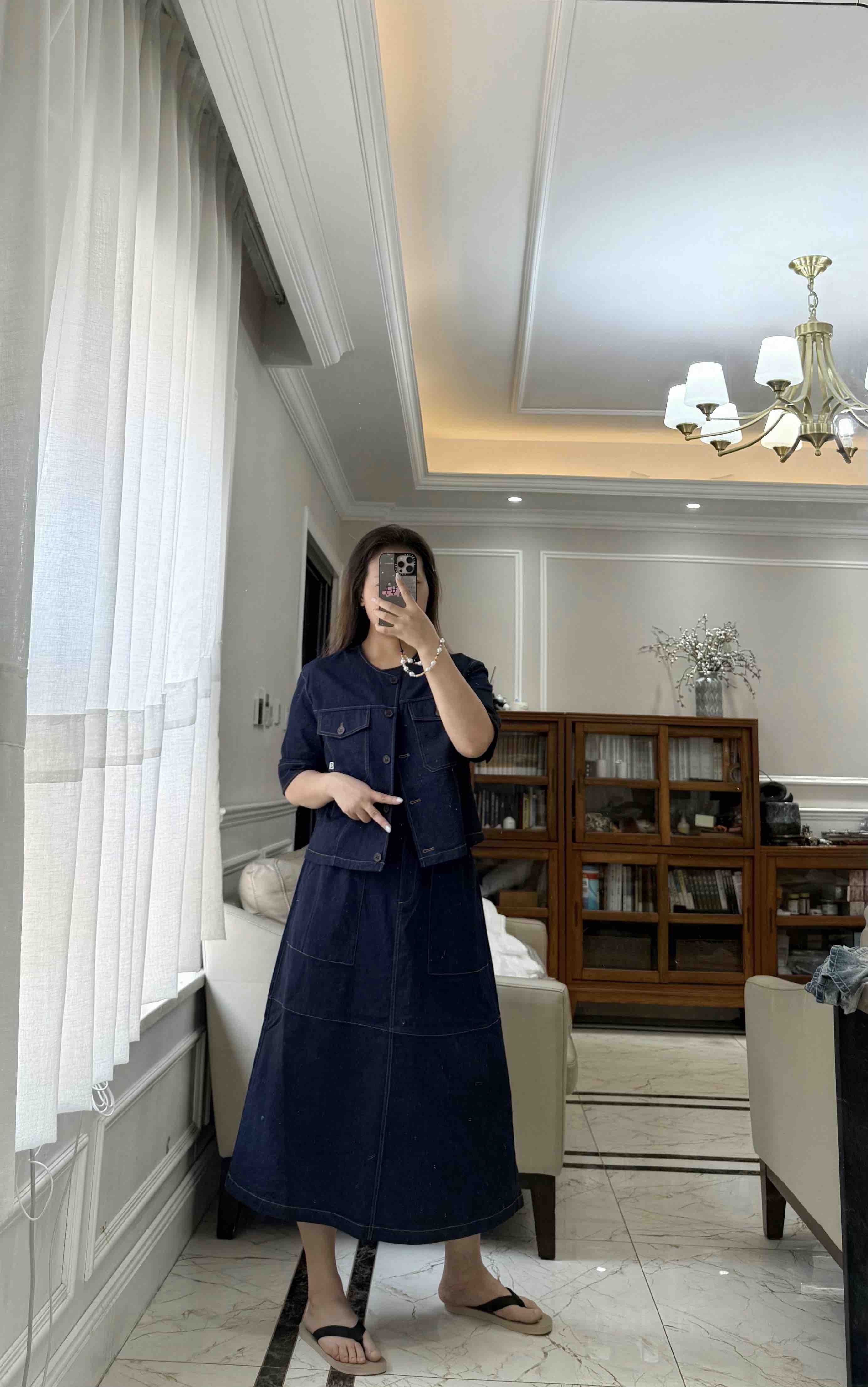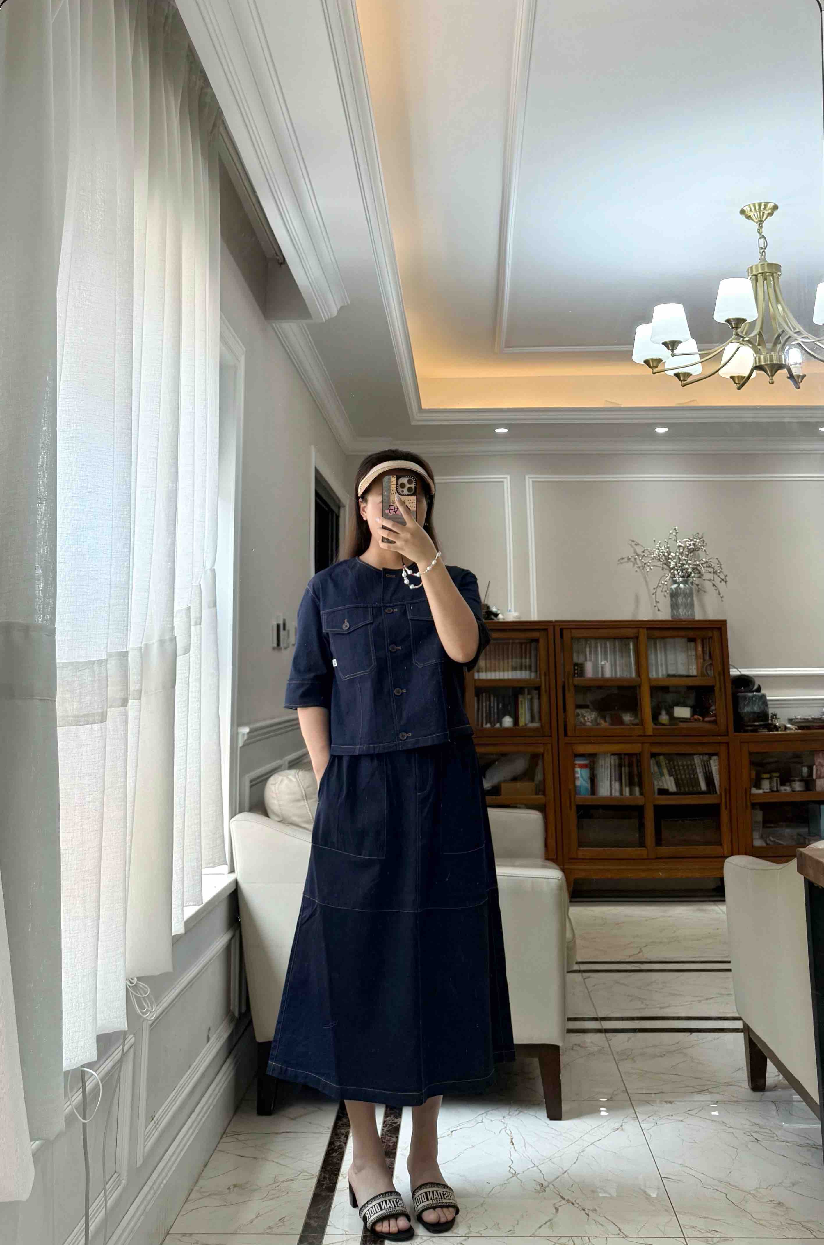 520-1 独家圆正 春夏薄款 斜纹棉弹牛仔布 中袖外套 半身裙 我穿38