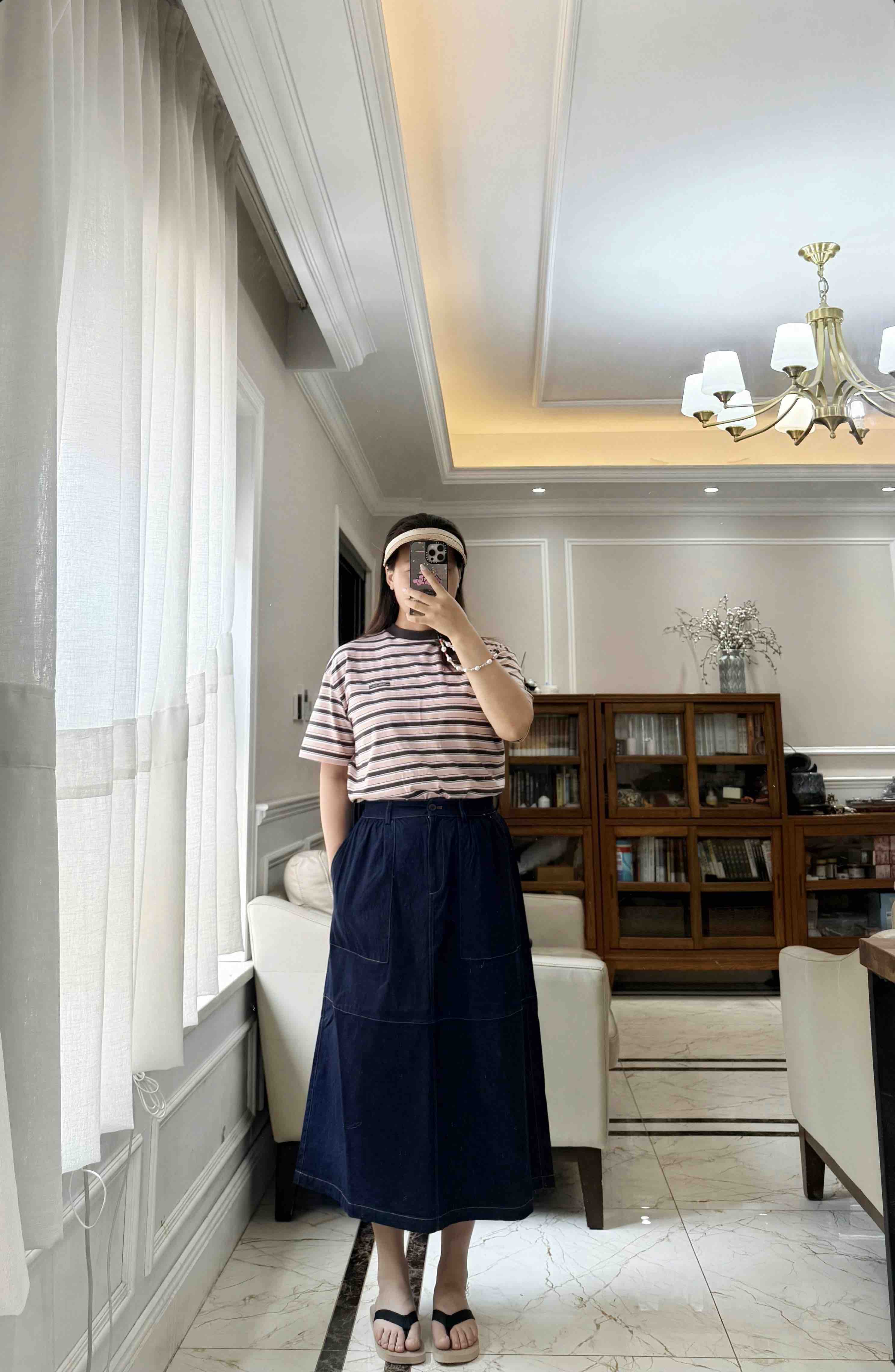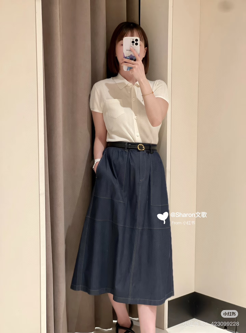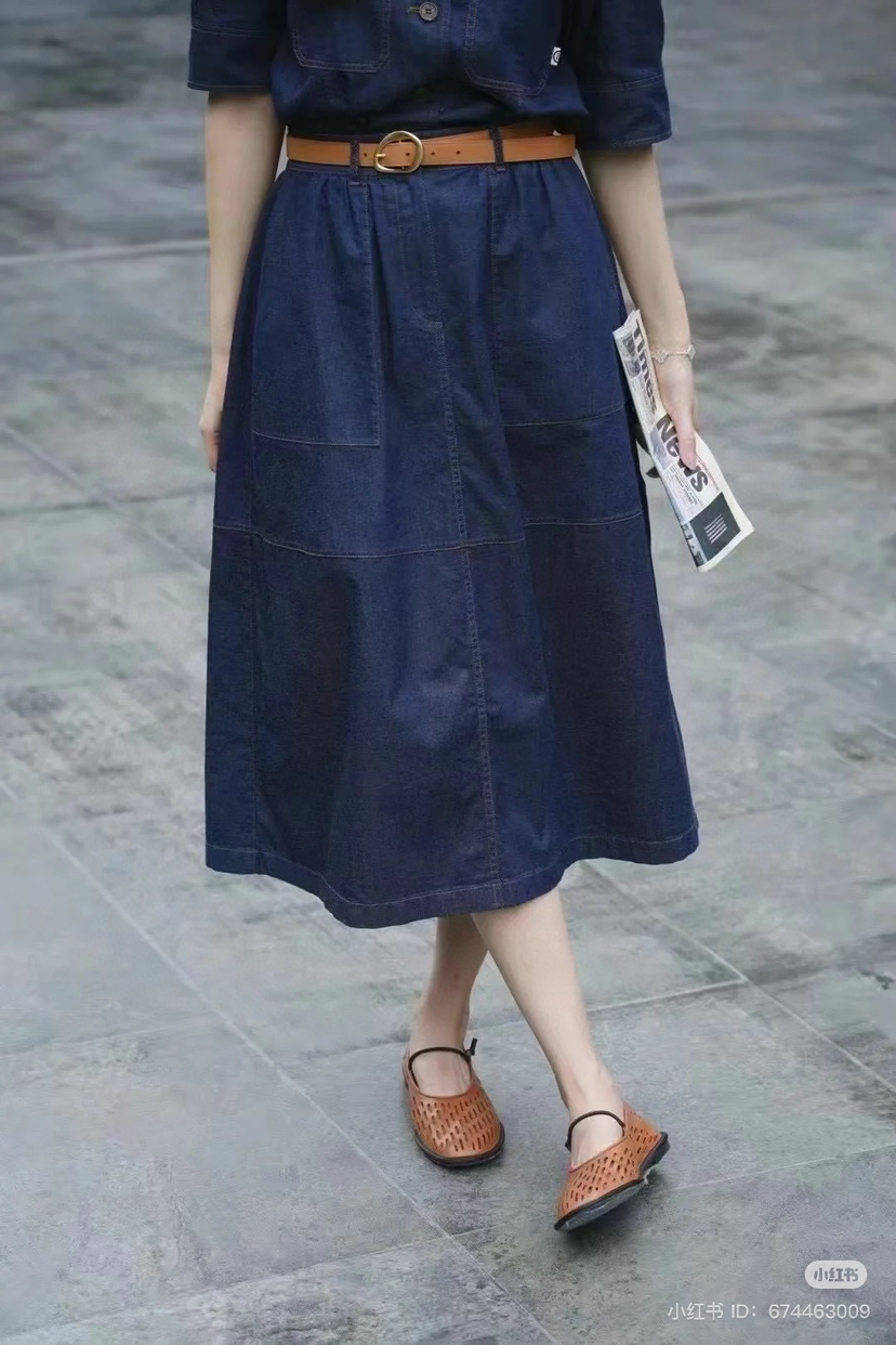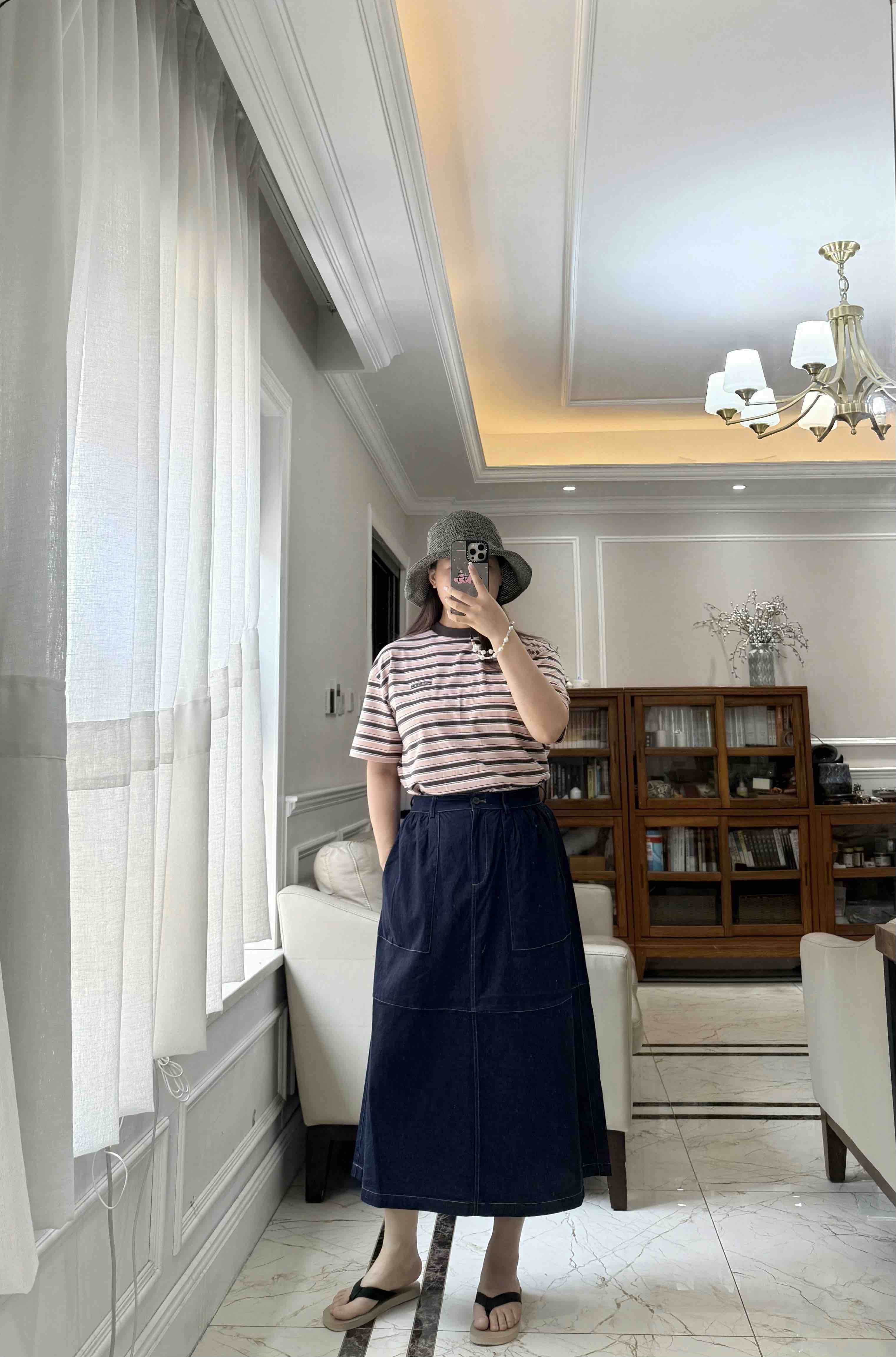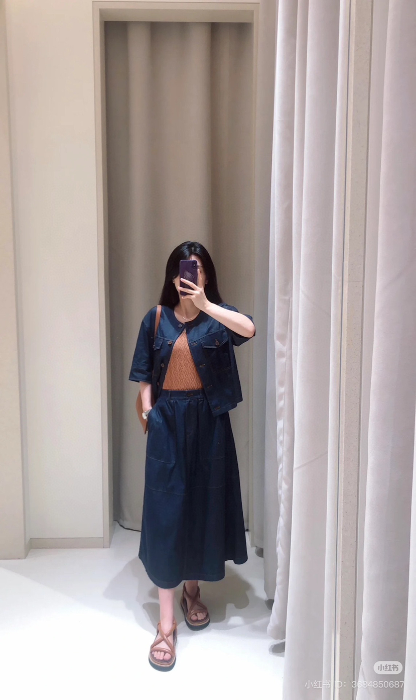 520-1 独家圆正 春夏薄款 斜纹棉弹牛仔布 中袖外套 半身裙 我穿38