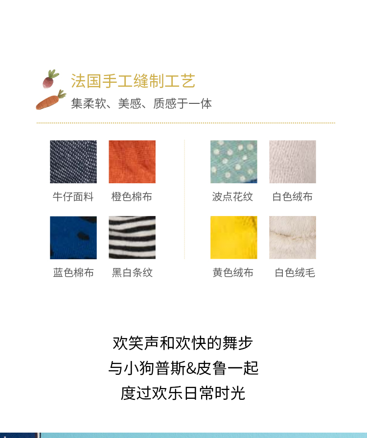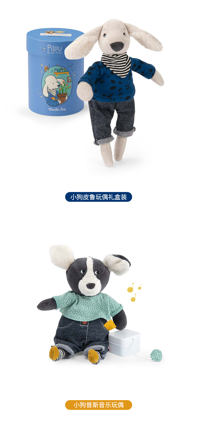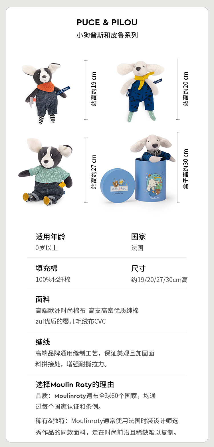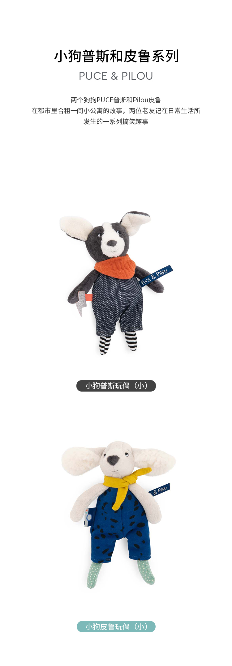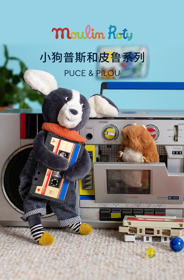 Moulin Roty 小号小狗普斯 法式玩偶 适合年龄0岁+ 小狗普斯与皮鲁系列 法国玩具 684013
