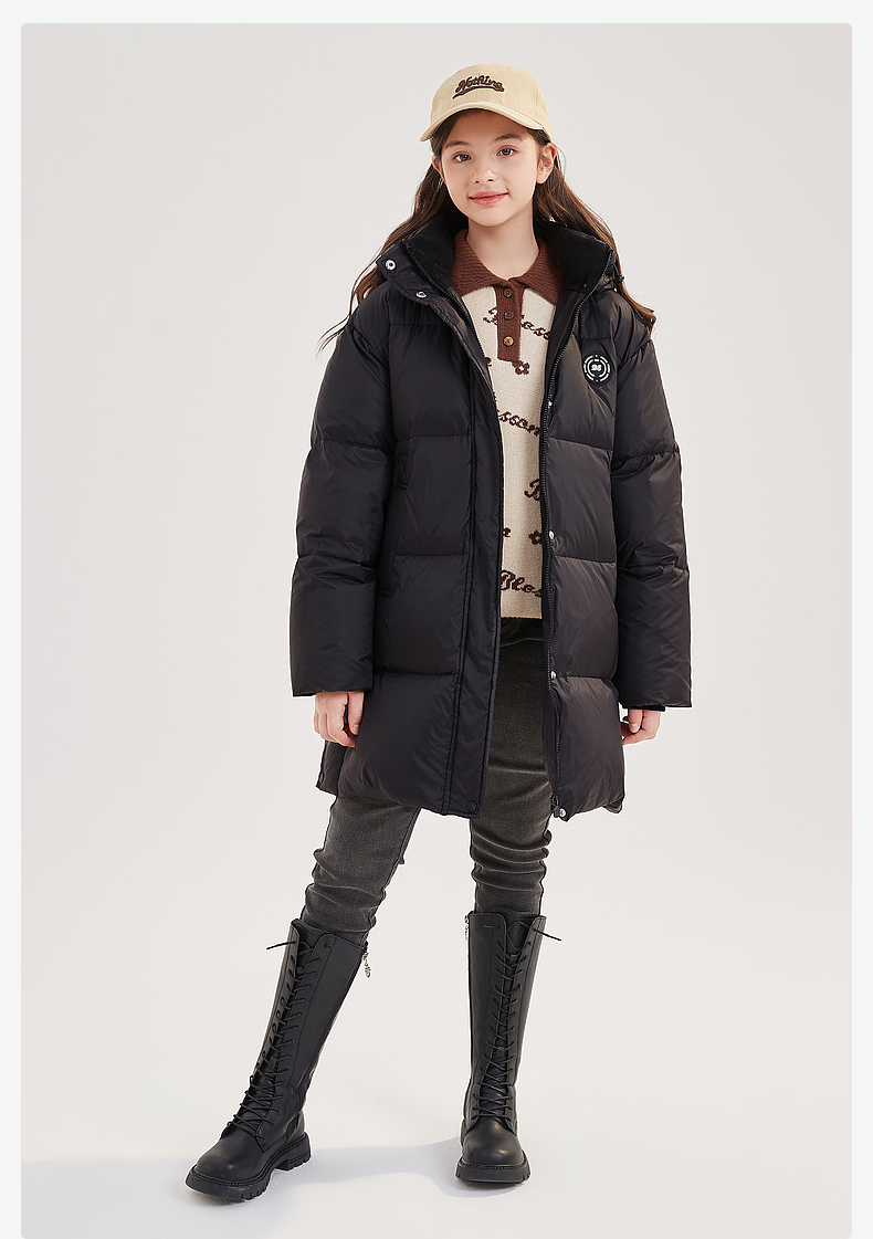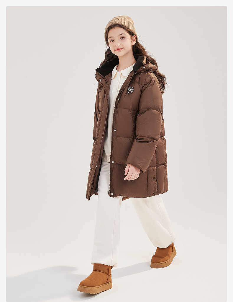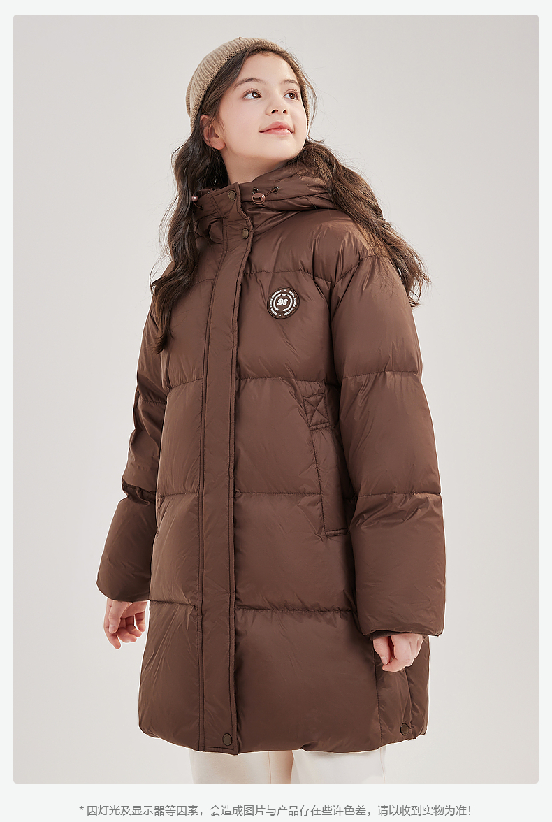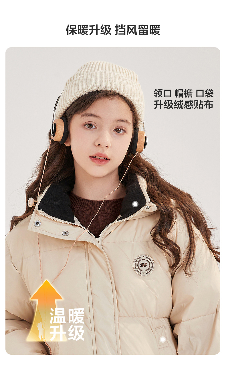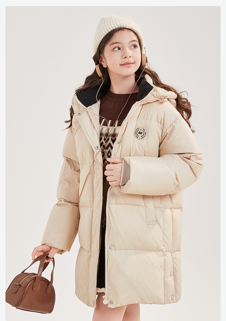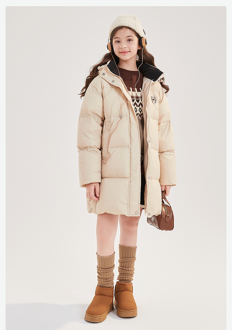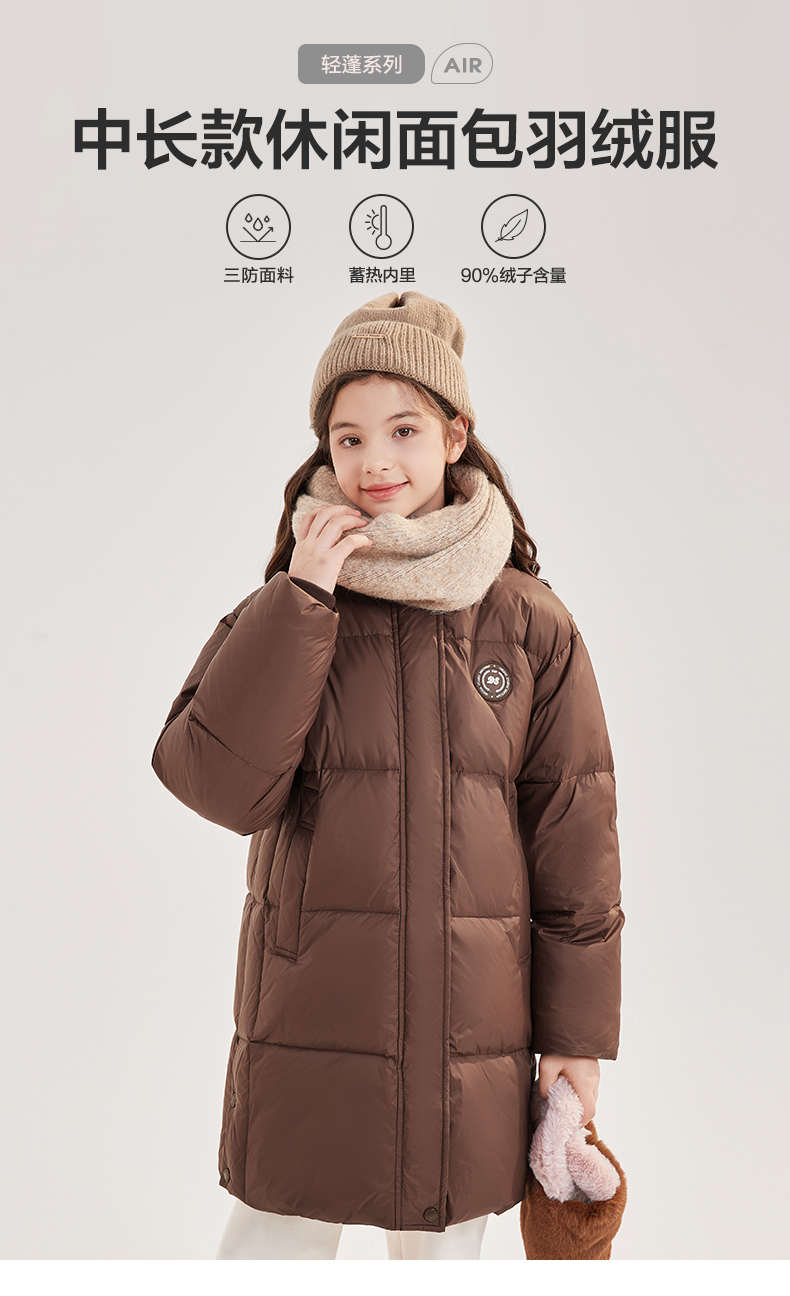 笛莎Deesha青少年女童羽绒服2024冬季新款复古学院风中长款休闲面包羽绒服