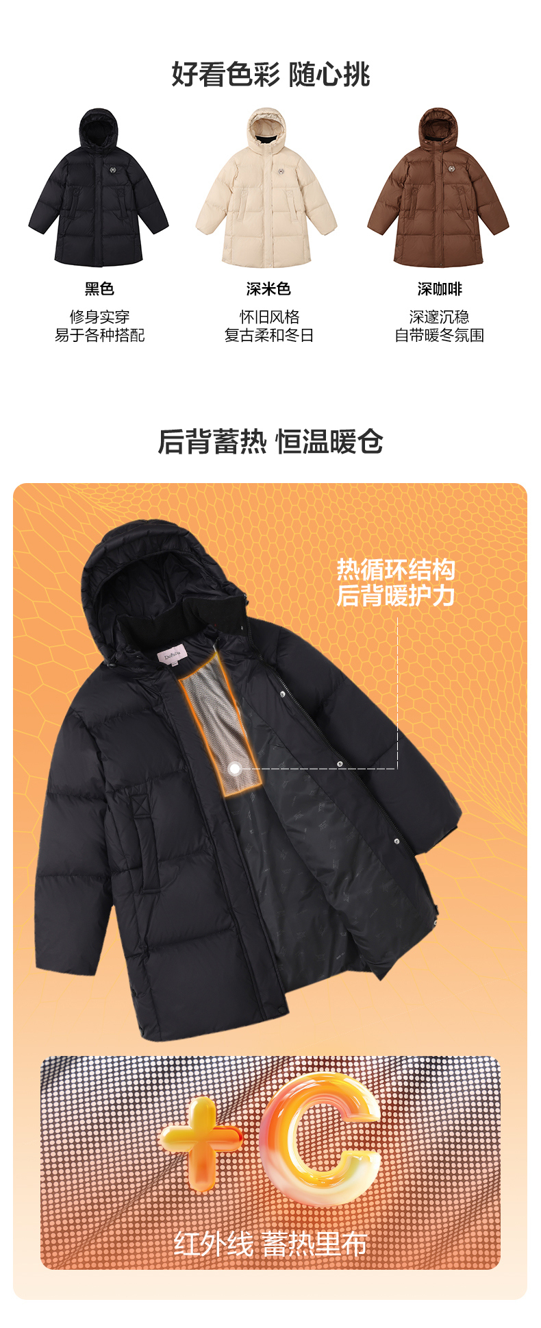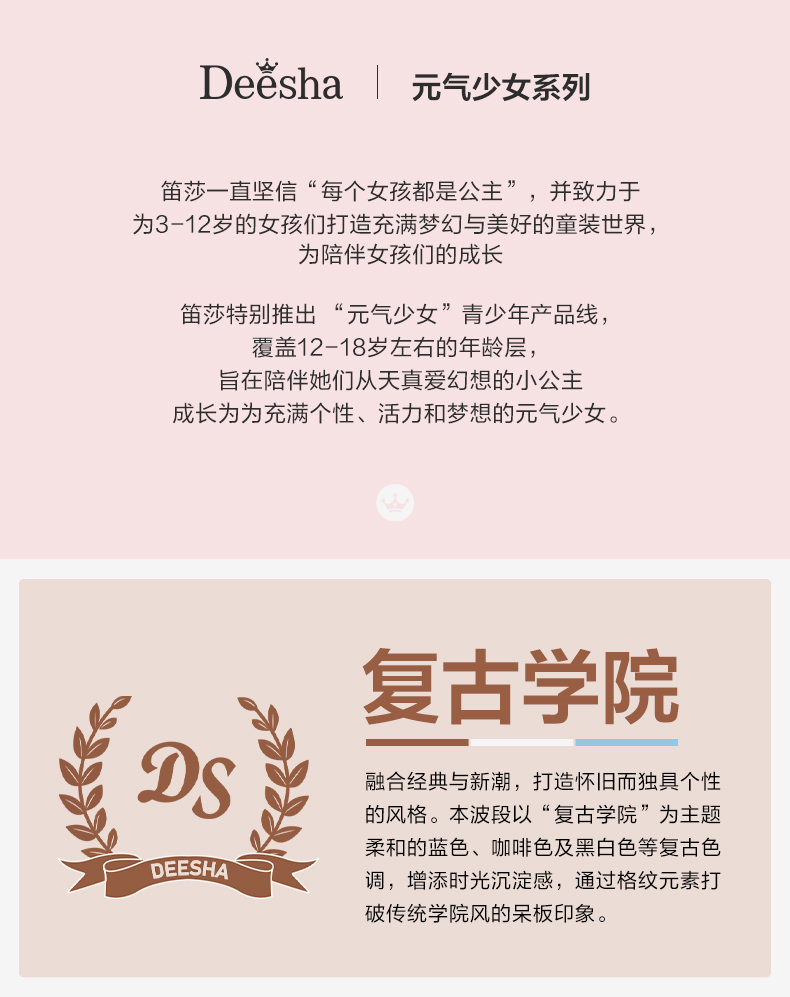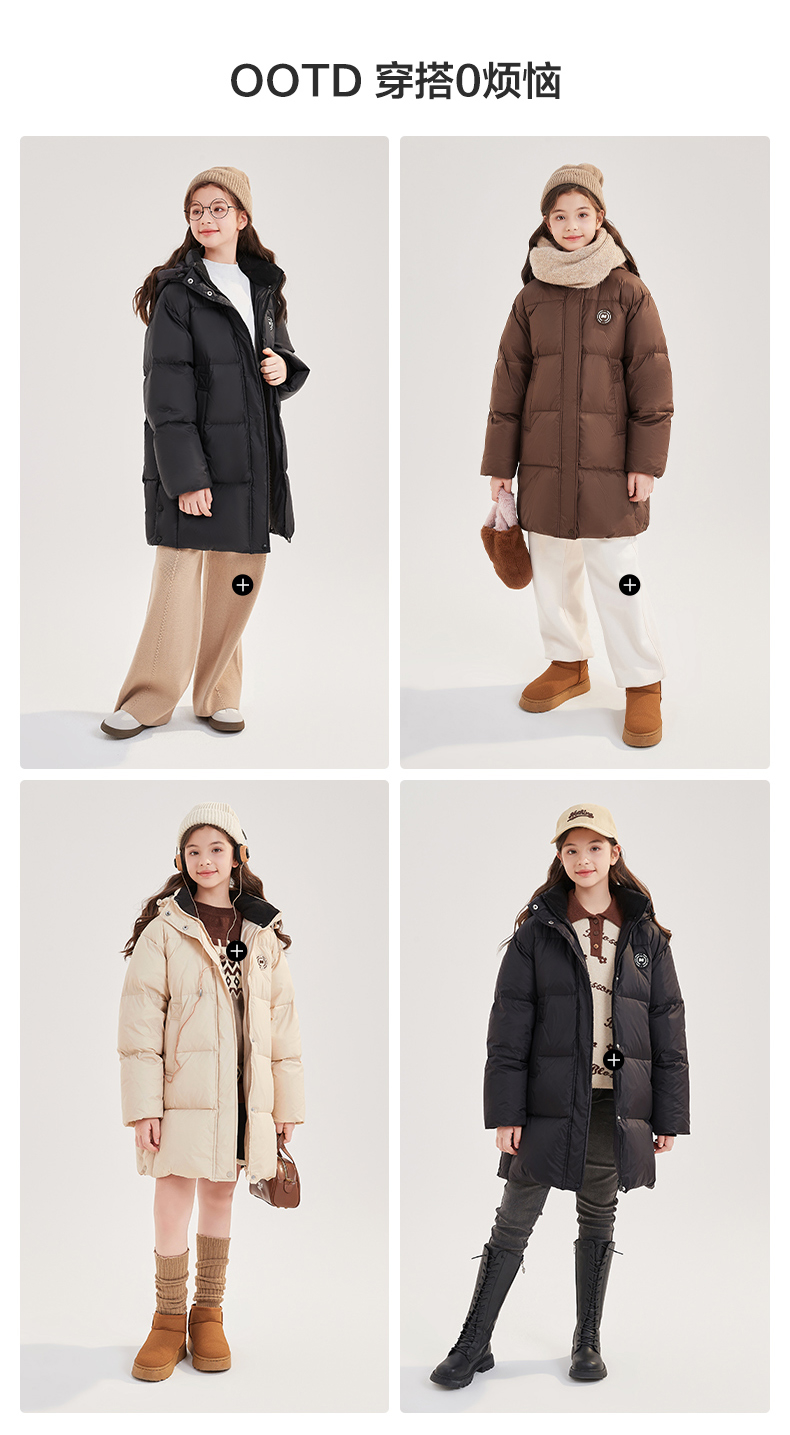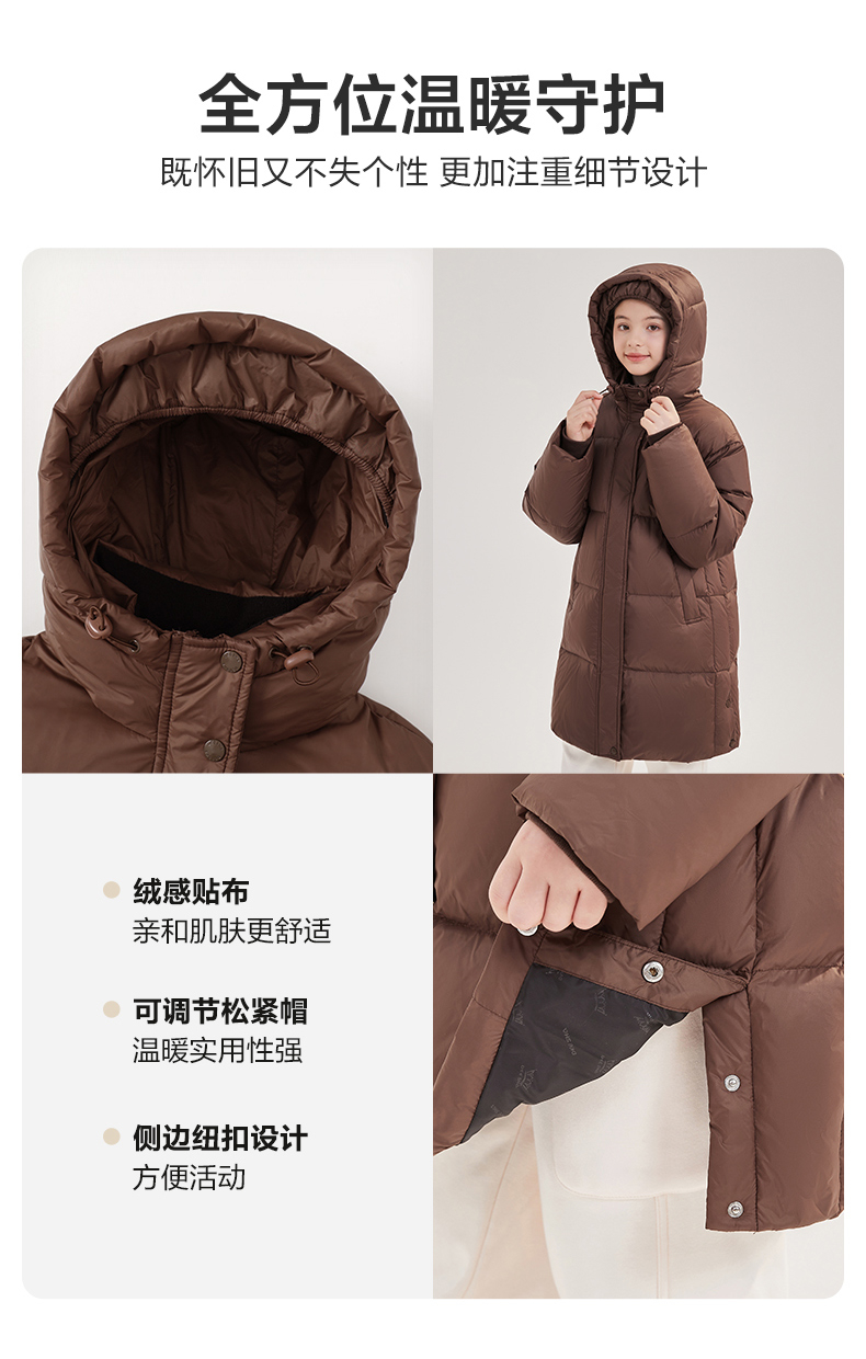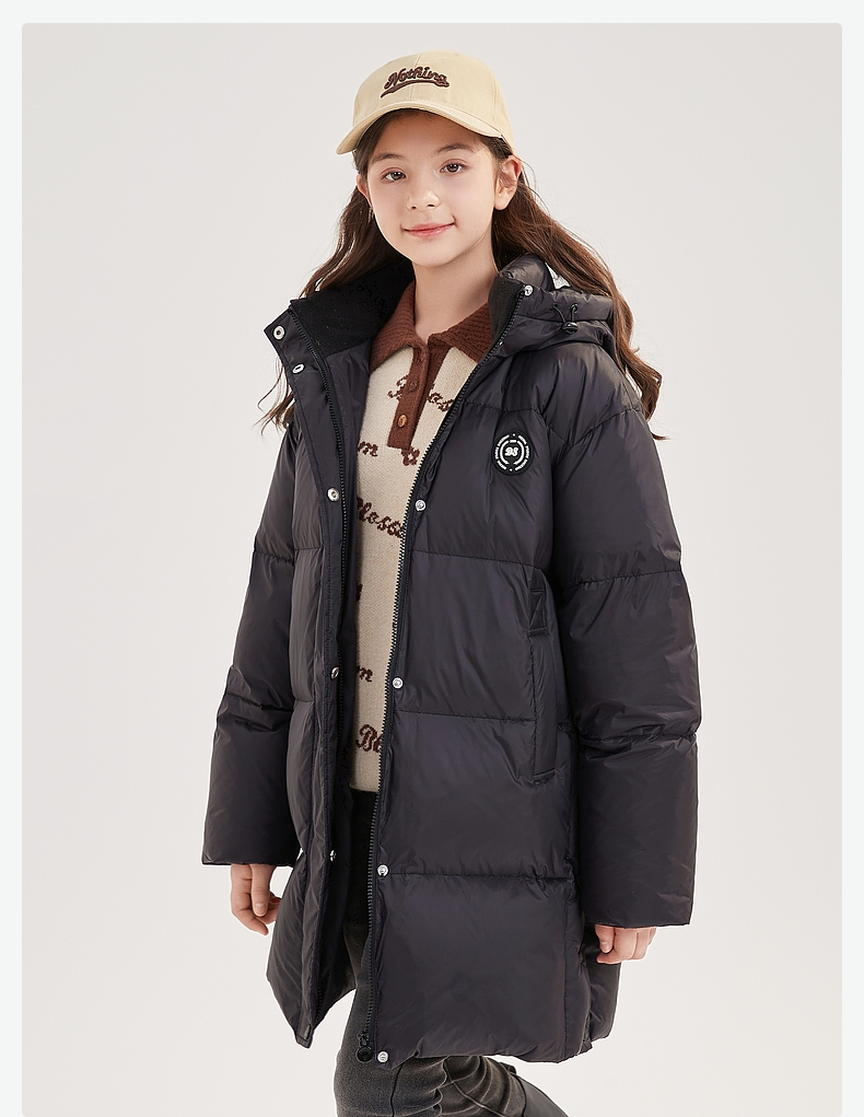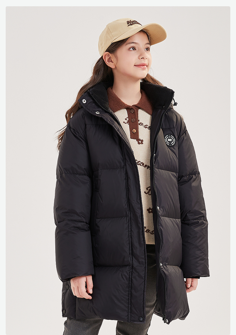 笛莎Deesha青少年女童羽绒服2024冬季新款复古学院风中长款休闲面包羽绒服