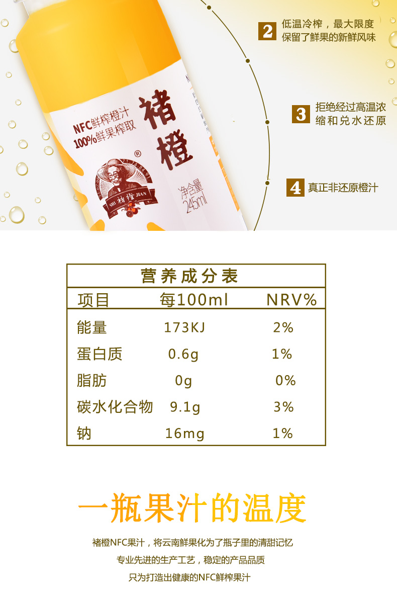 褚橙NFC鲜榨橙汁245ml*12瓶