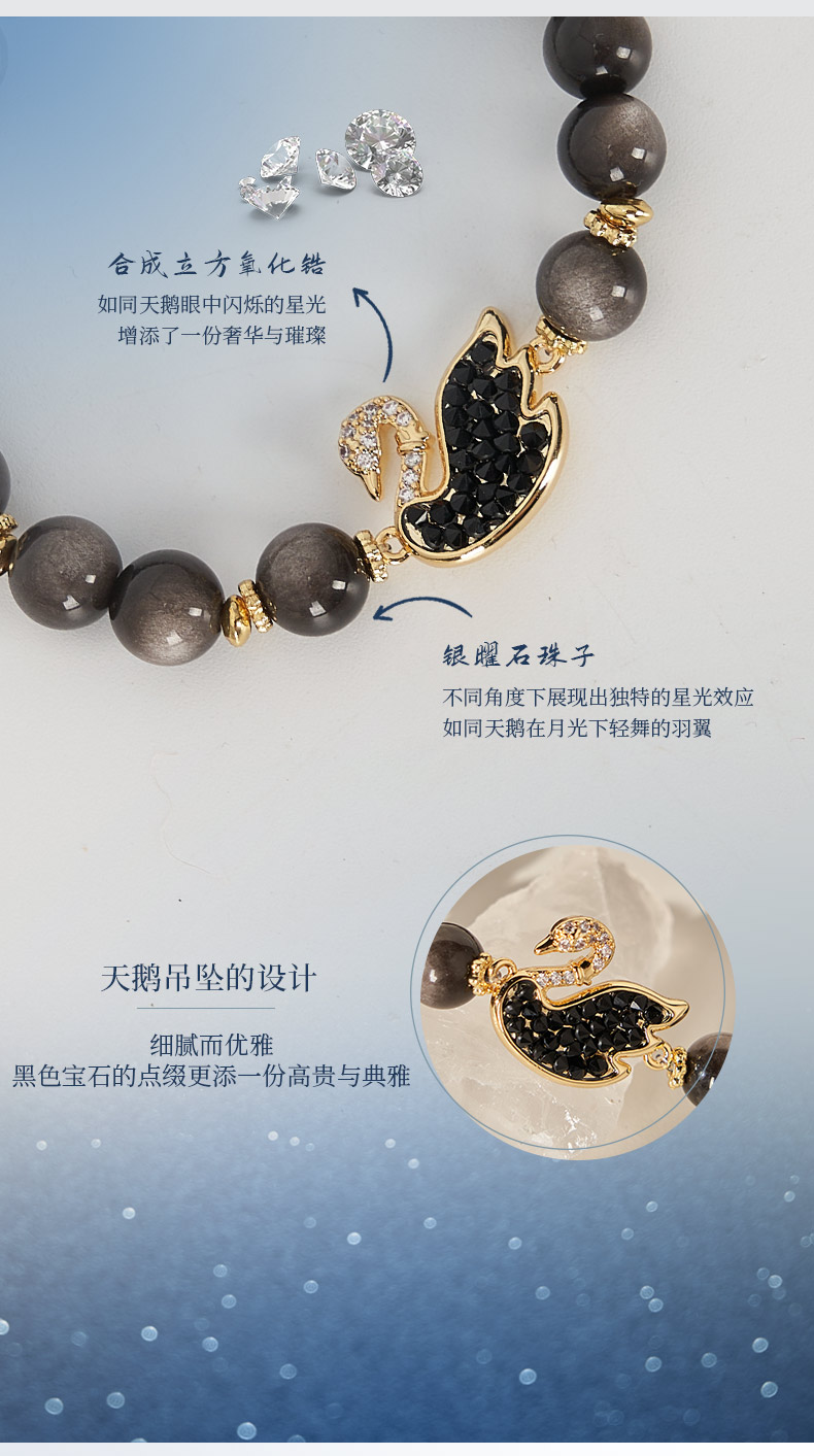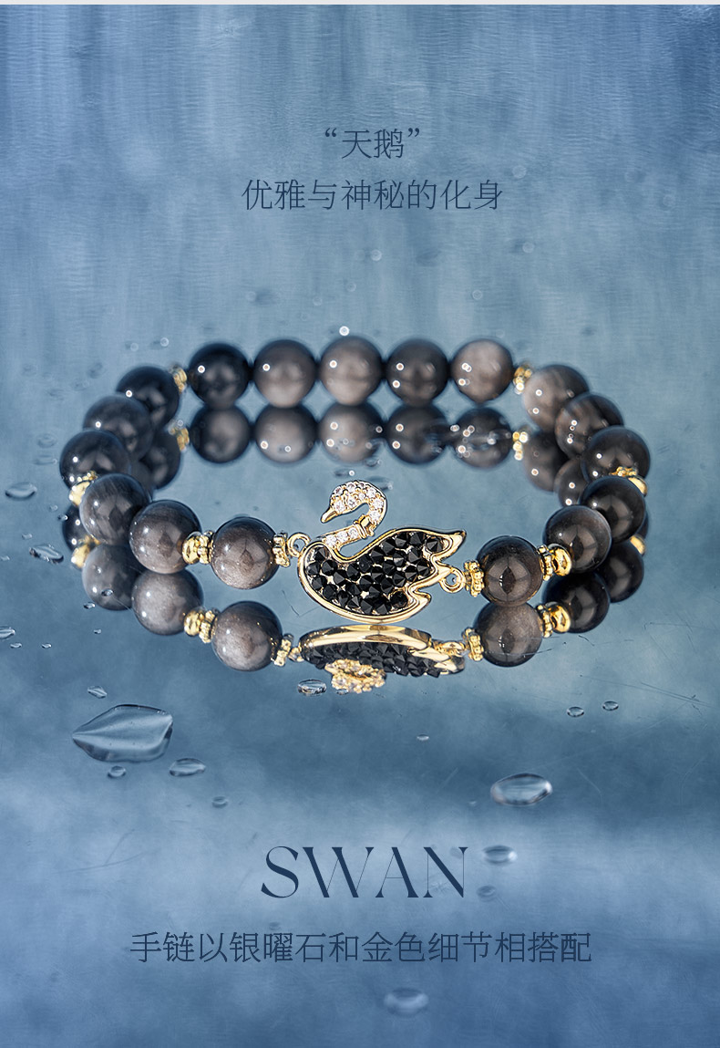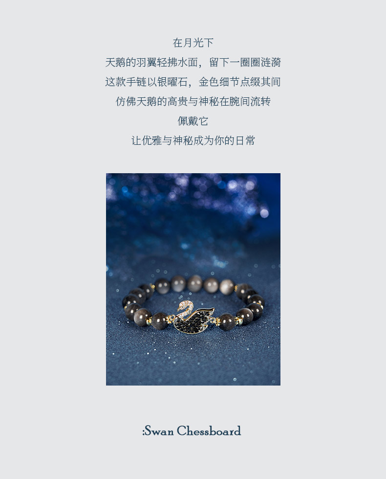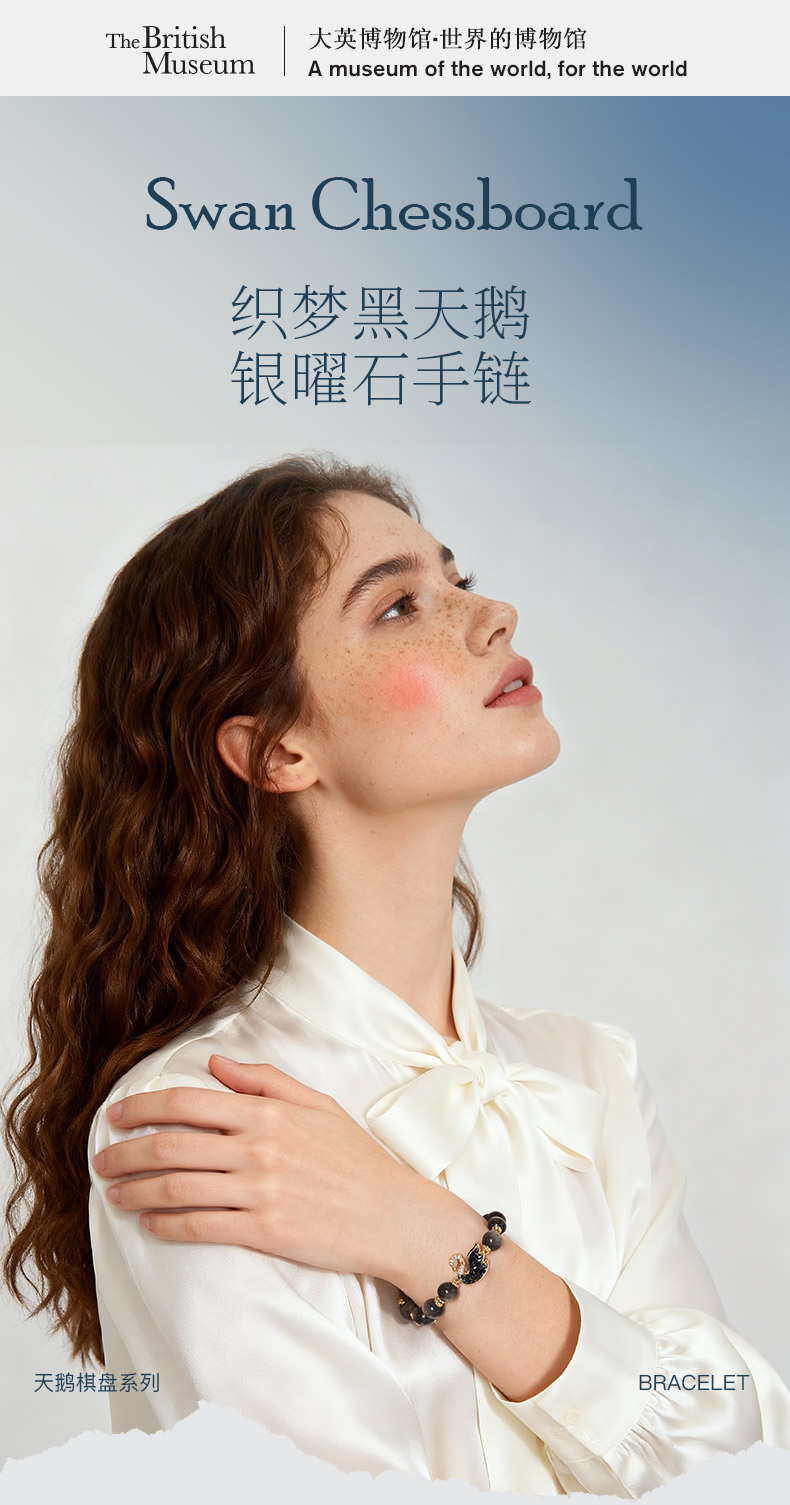 大英博物馆 天鹅棋盘系列 织梦黑天鹅 银曜石手链