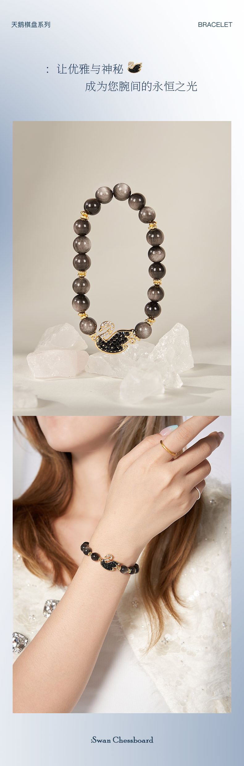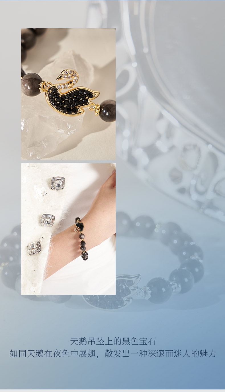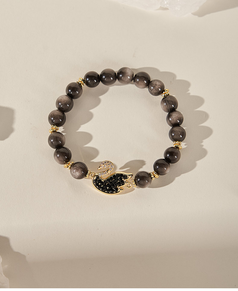 大英博物馆 天鹅棋盘系列 织梦黑天鹅 银曜石手链