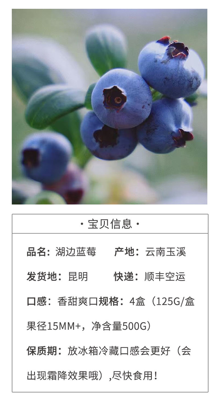【抚仙湖蓝莓】用全国水质好的抚仙湖水灌溉的,长出的蓝莓水灵饱满,汁多肉甜,果皮厚厚,其中的花青素和维生素含量超高,爱护眼睛就多吃蓝莓!!