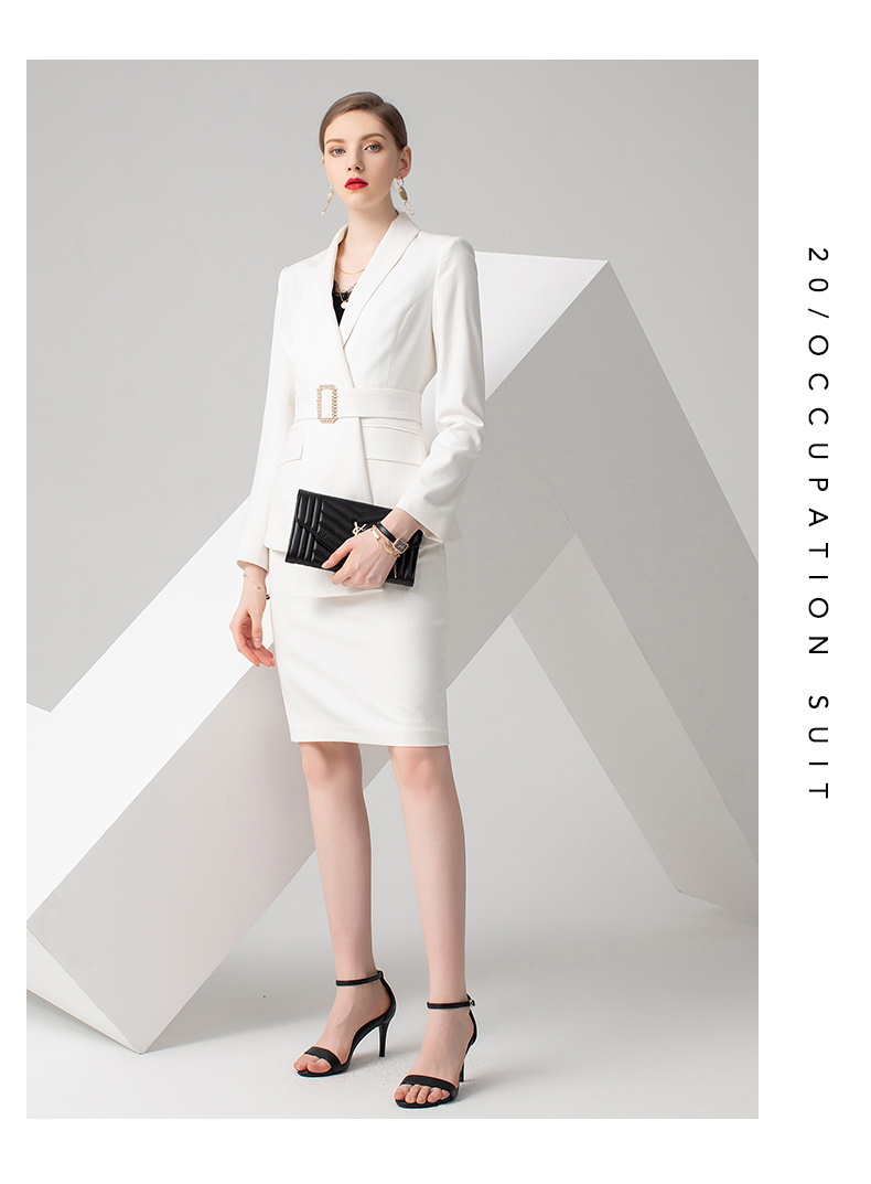 IWY/白色长袖西装半裙套装CS10347
