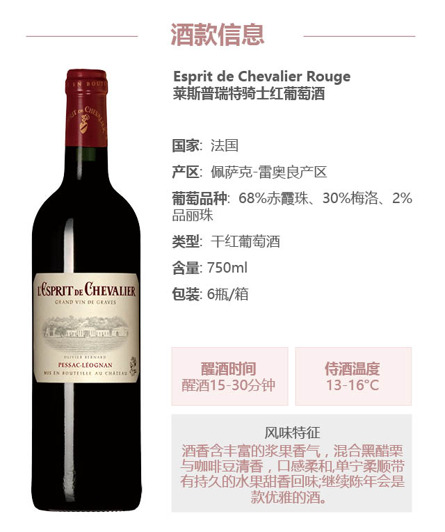莱斯普瑞特骑士红葡萄酒 L'esprit de Chevalier Red 750ml