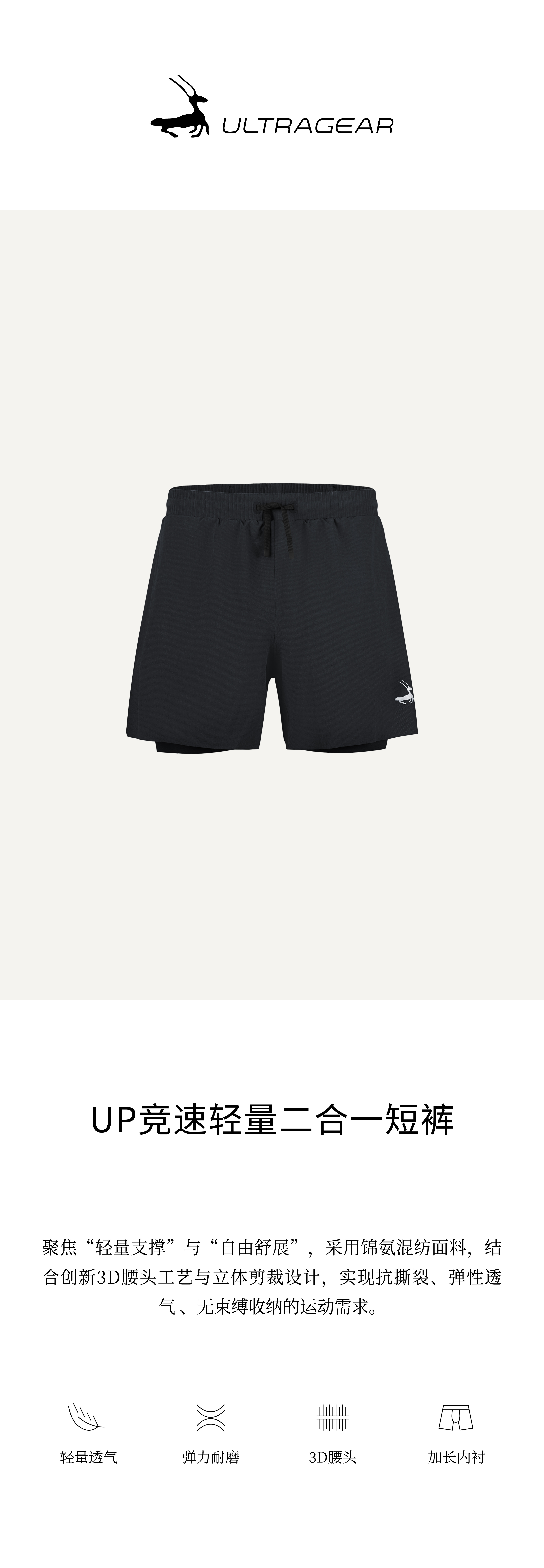 优极UG UP竞速轻量二合一短裤