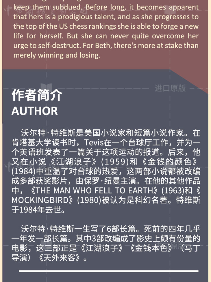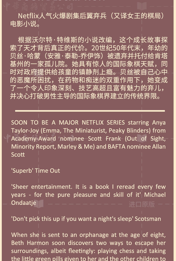 【中商原版】后翼弃兵 女王的棋局 电影版小说 英文原版 The Queen's Gambit Netflix Drama 沃尔特·特维斯 Walter Tevis