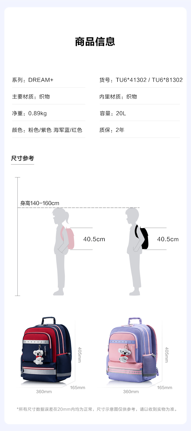 新秀丽DREAM+系列轻便内里抗菌面料健儿童书包 TU6*302 (带考拉挂饰)