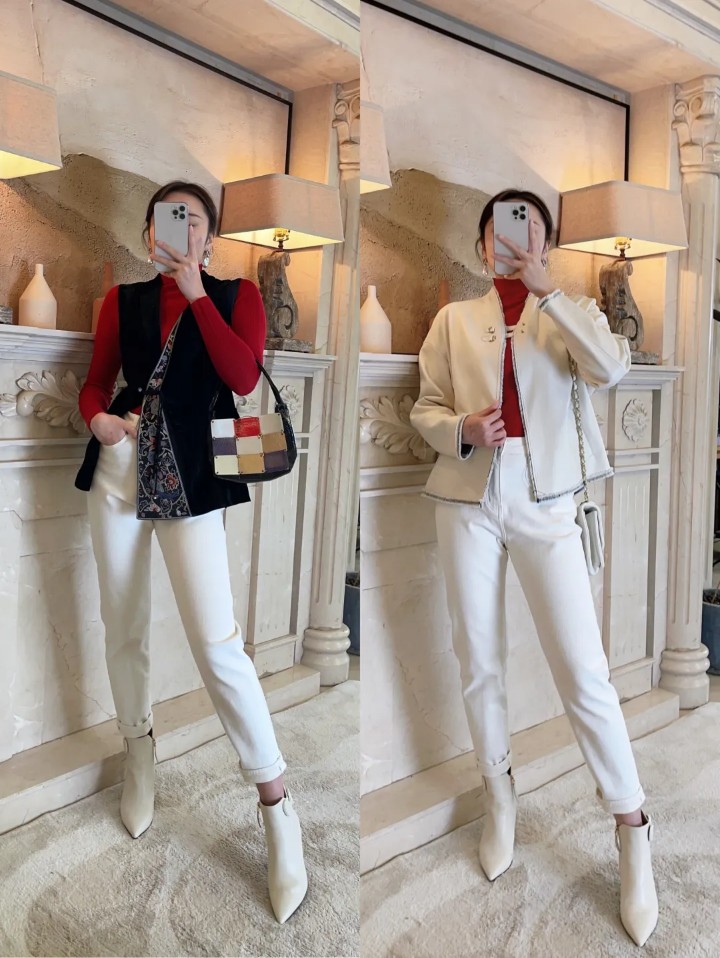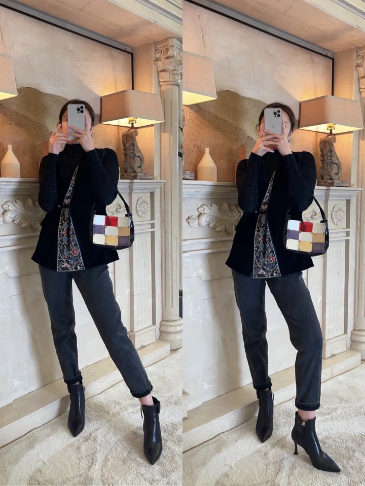 皮靴搭配小脚牛仔裤👖近年来非常流行!!