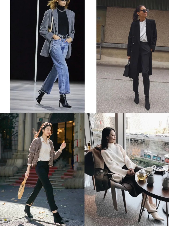 时尚圈也永远会有一双高跟短靴!摩登效果一下就出来了,时尚气质拉满了!
