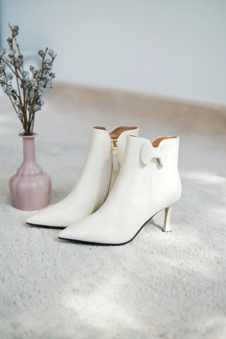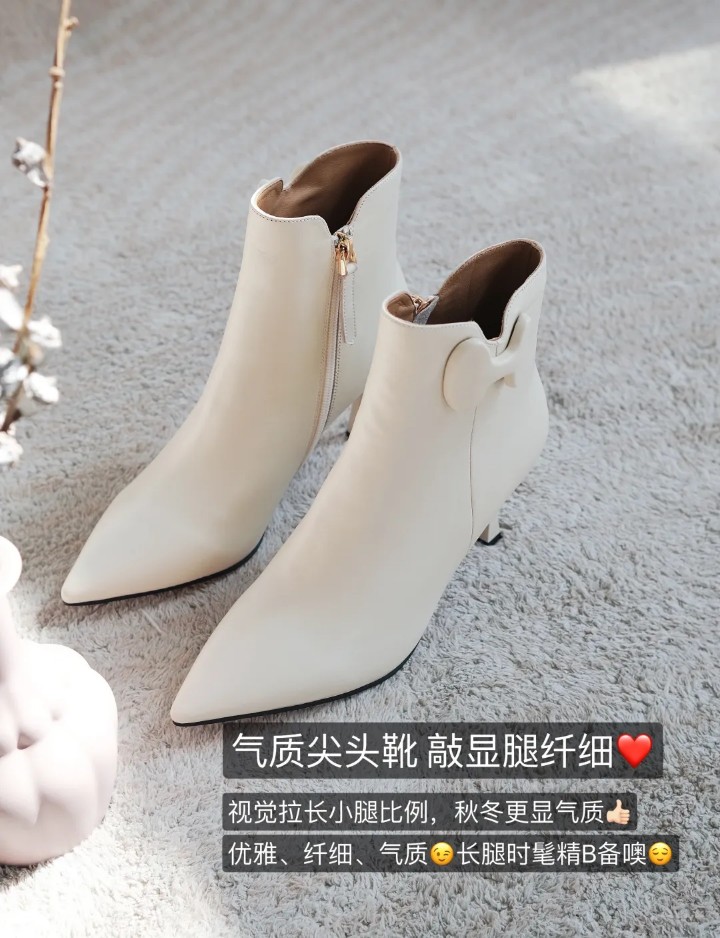 skp奢品牌代工厂定制——秋冬8cm气质尖头高跟短靴高跟鞋 上脚如3厘米左右脚感 【头层胎牛皮+内里全包羊皮】柔软舒服透气 防滑耐磨 尖头显气质显瘦显腿长!气质黑、优雅白两色
