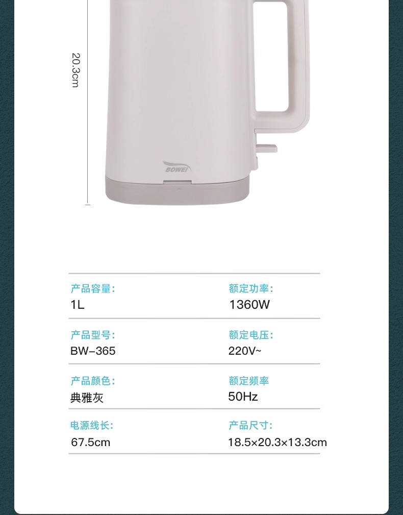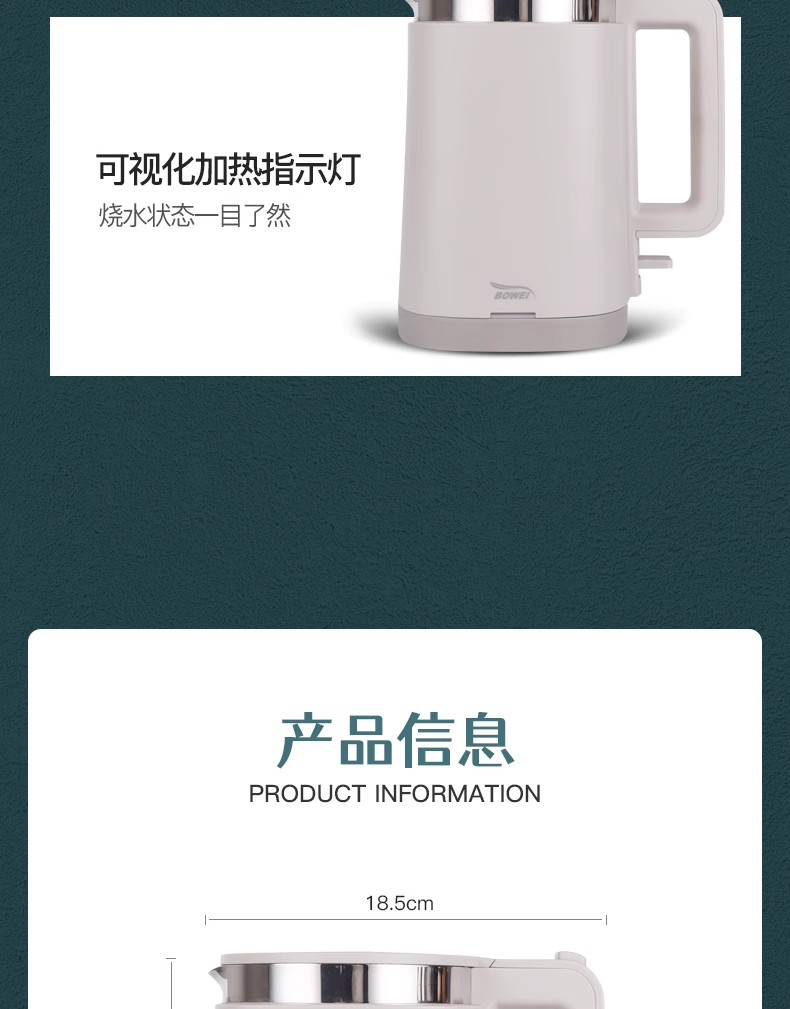 酒店专用bowei泊为电热水壶BW365家用开水壶民宿宾馆304不锈钢