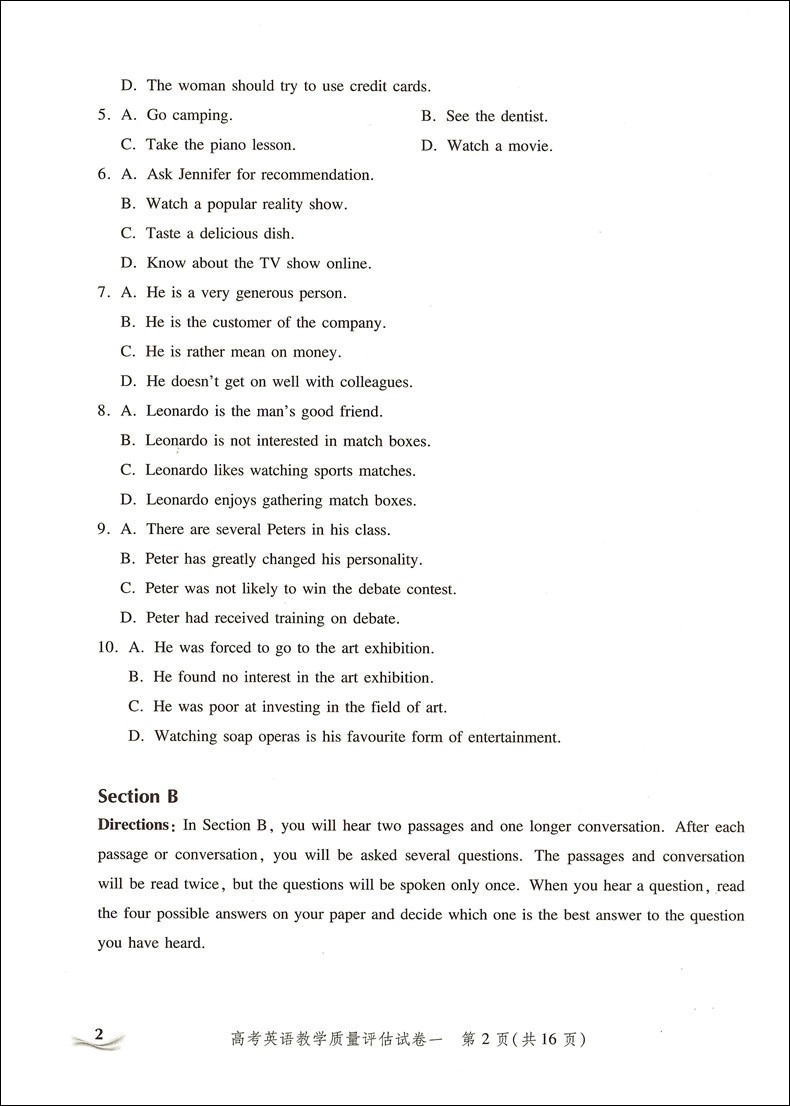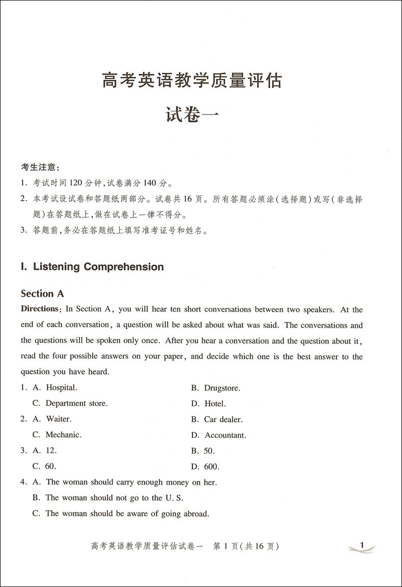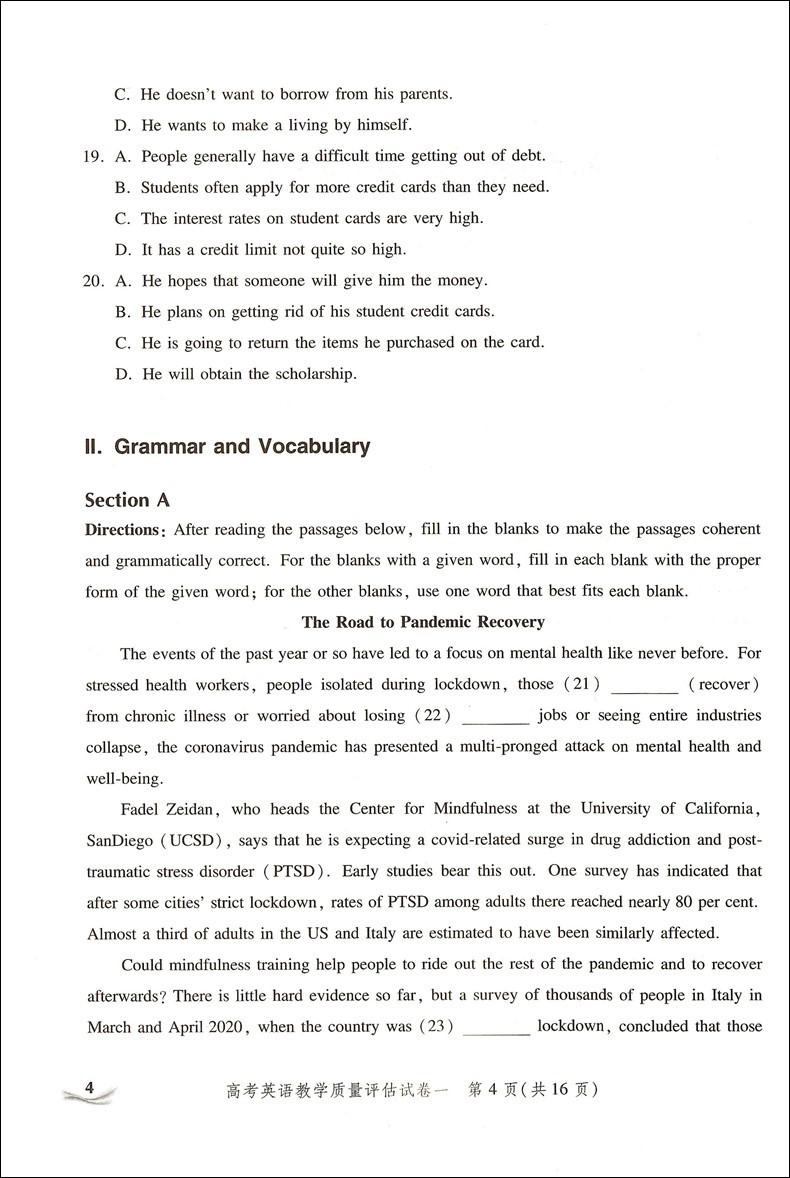 【上海高考】2023上海市高考英语教学质量评估试卷 附参考答案