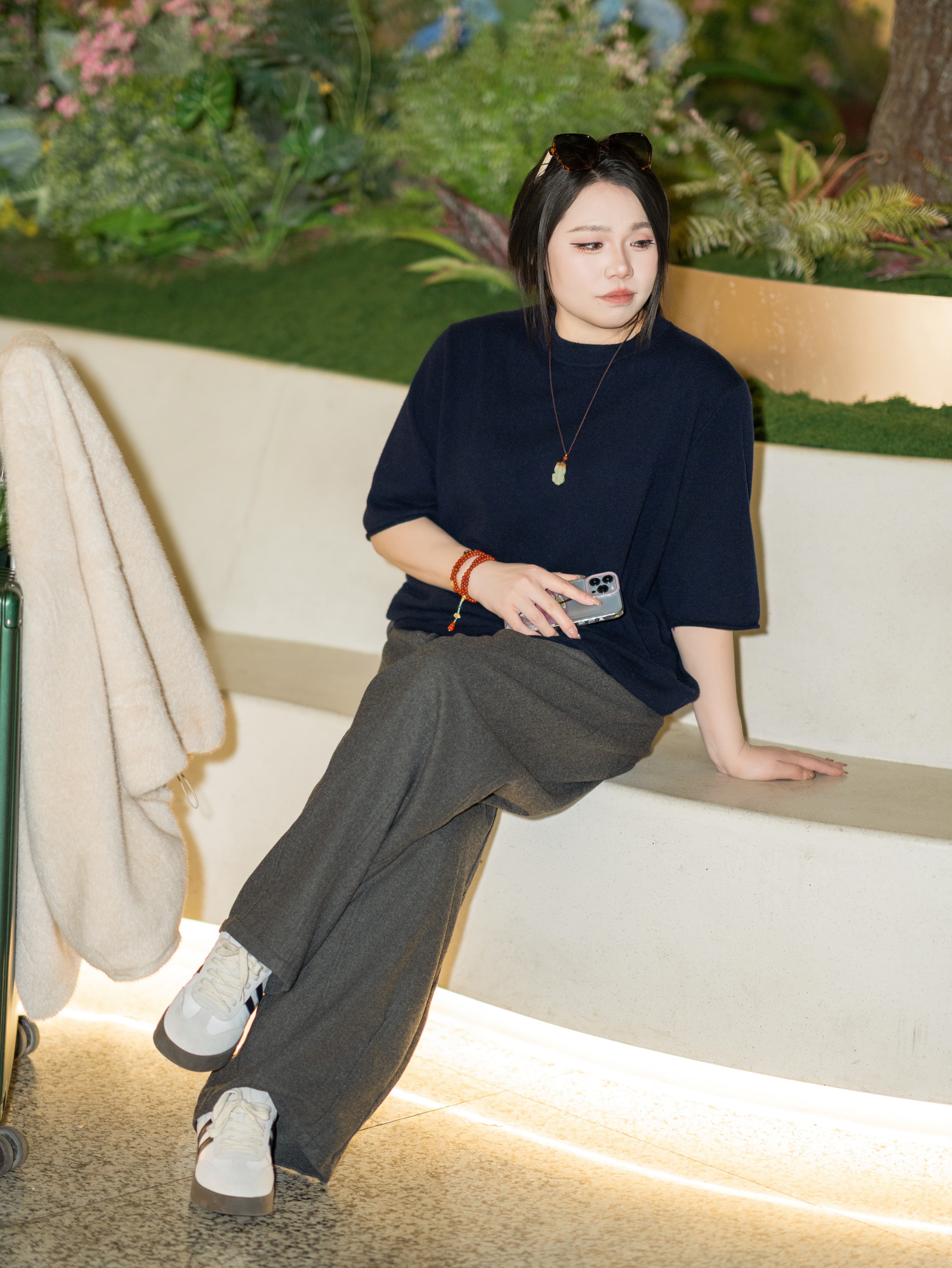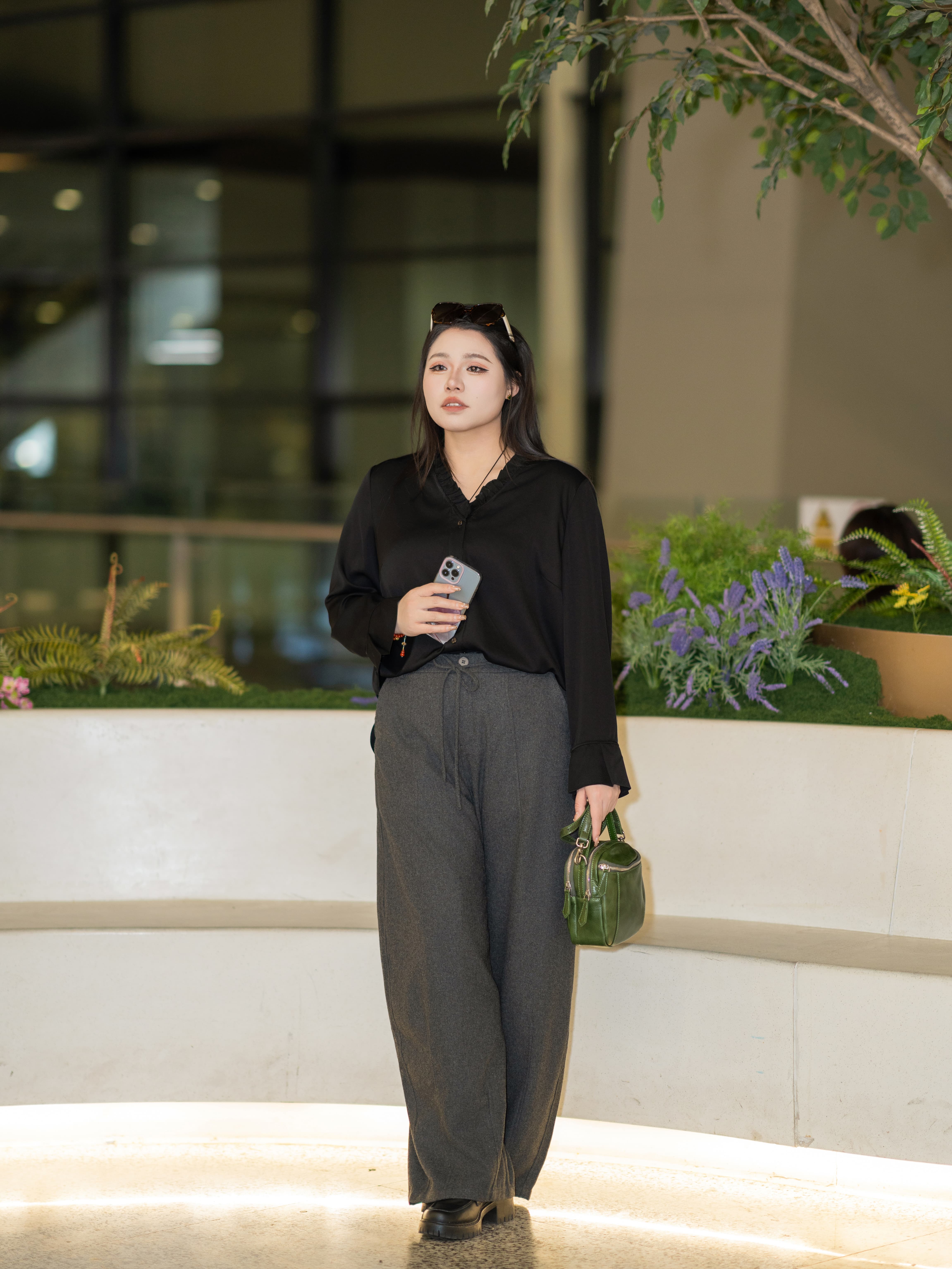一周发货【垂顺感阔腿裤】【可备注裁剪】毛呢立体,垂顺度很好!深灰色&咖色,后腰松紧,材质40%绵羊毛,60%聚酯纤维,内层有内衬