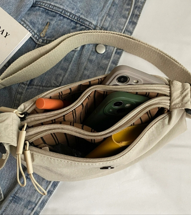 最近每天饭后遛狗遛弯 因为有斜挎背带解放双手 我一直在背,贼能装,拎起来就走 能装下一整个世界❗❗❗ 三个拉链兜,拉链贼顺畅 手机、充电宝、纸巾balabala通通装下❗ 夏天衣服有时候没兜 拿手机钥匙耳机雨伞下楼很不方便 这个轻便容量极大的小包就派上用场了 真的是我日常利用率最高的包了 狂塞东西的“万能口袋”❗
