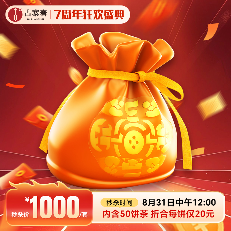 8月31日中午12点【1000元福袋】内含50饼茶饼折合每饼仅20元,其他品牌顶账产品,全部为357克产品,每个ID限购1份,超值