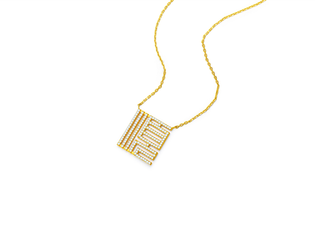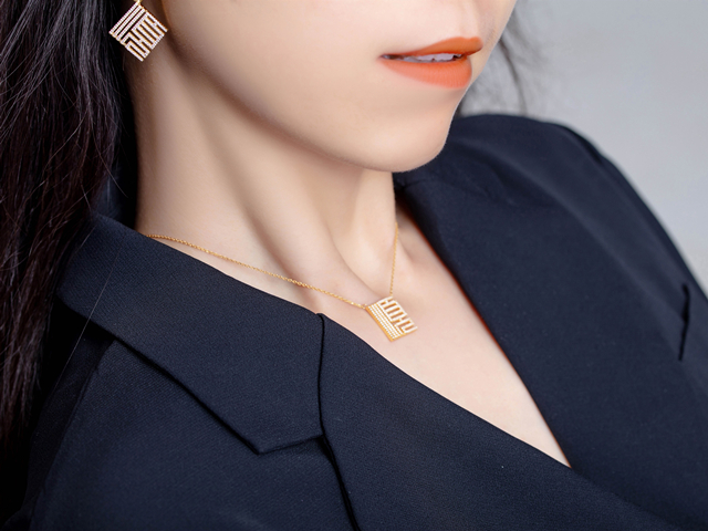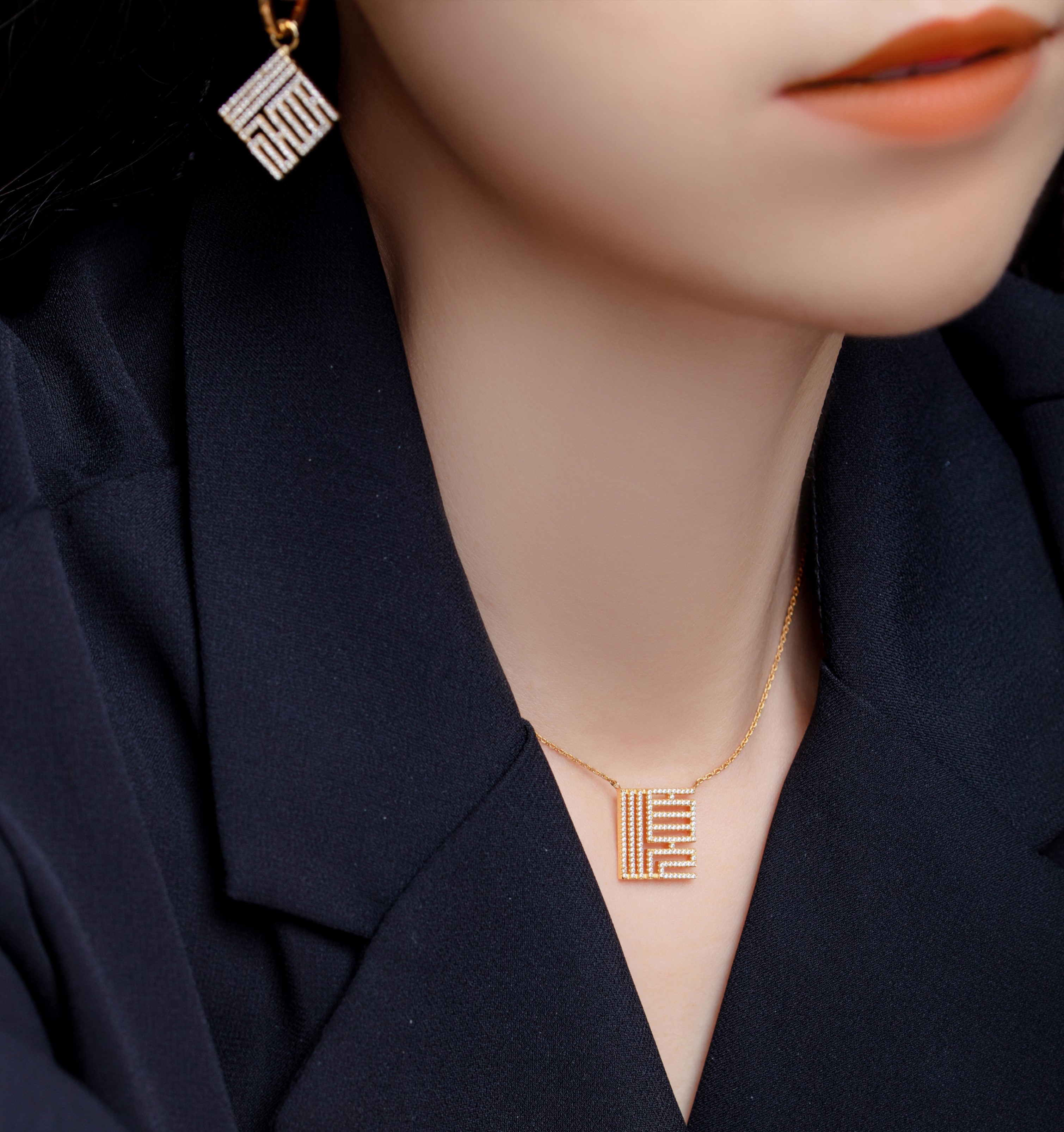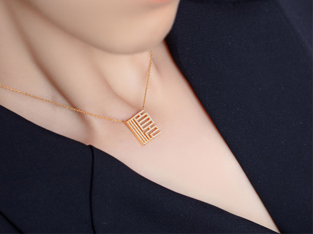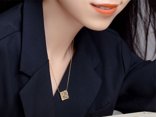 这款项链设计别致,是当下潮酷的字符款设计,佩戴起来鲜明个性立现,但因中和了篆书的复古和文化感,完全不会过分浮夸。