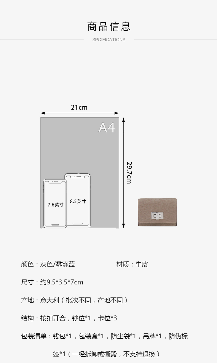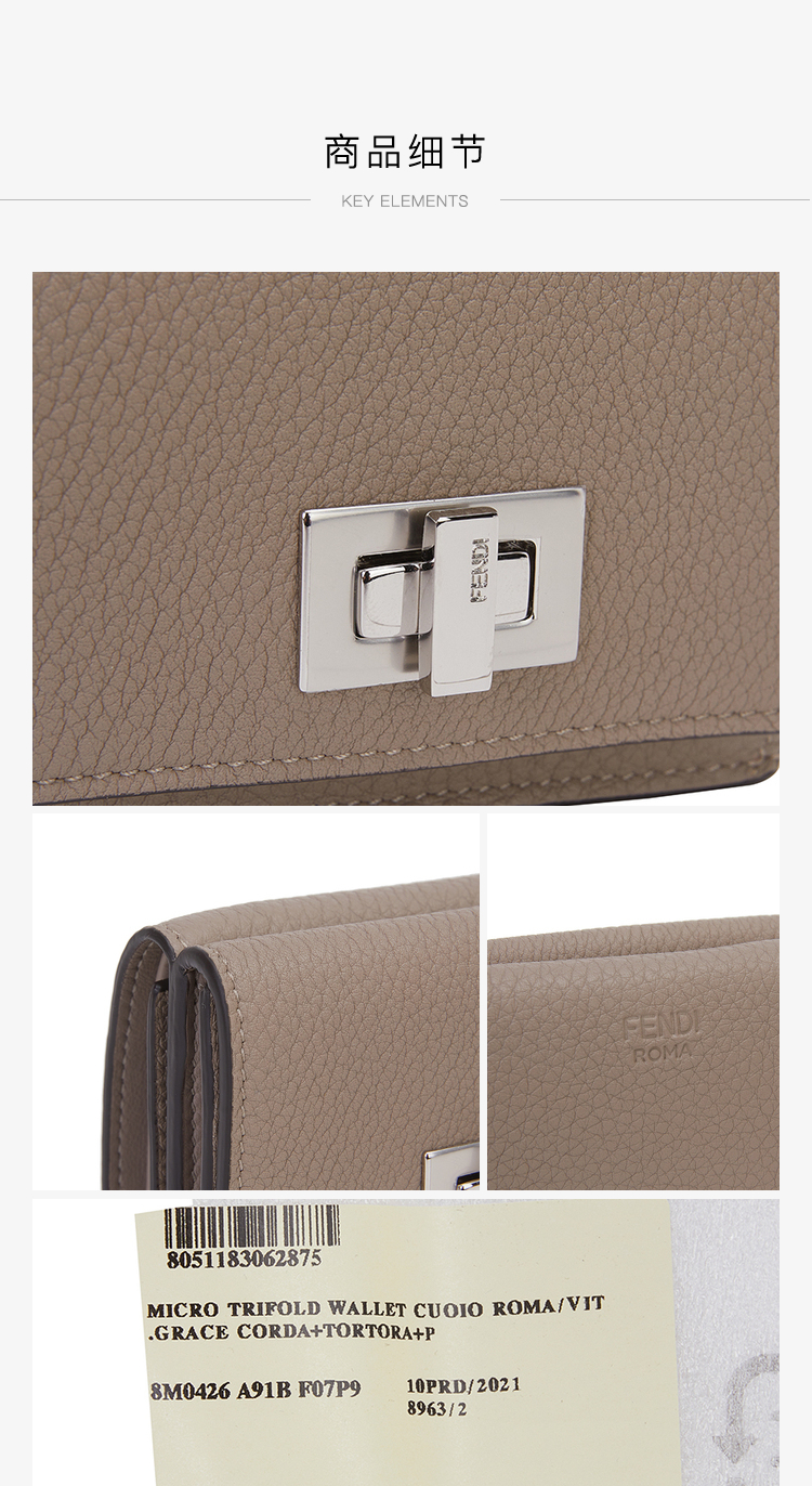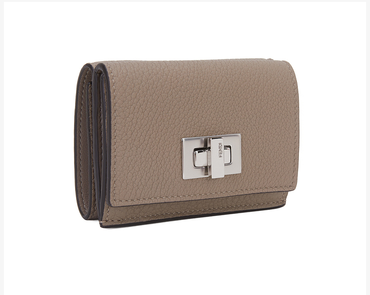 芬迪 FENDI 女士灰色荔枝纹牛皮三折钱包 8M0426 A91B F07P9