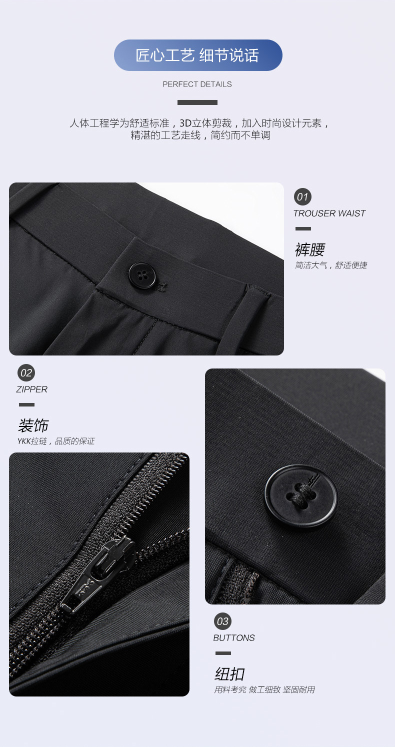 【 三防冰丝休闲裤】男士薄款易打理商务凉感高弹冰丝西裤男