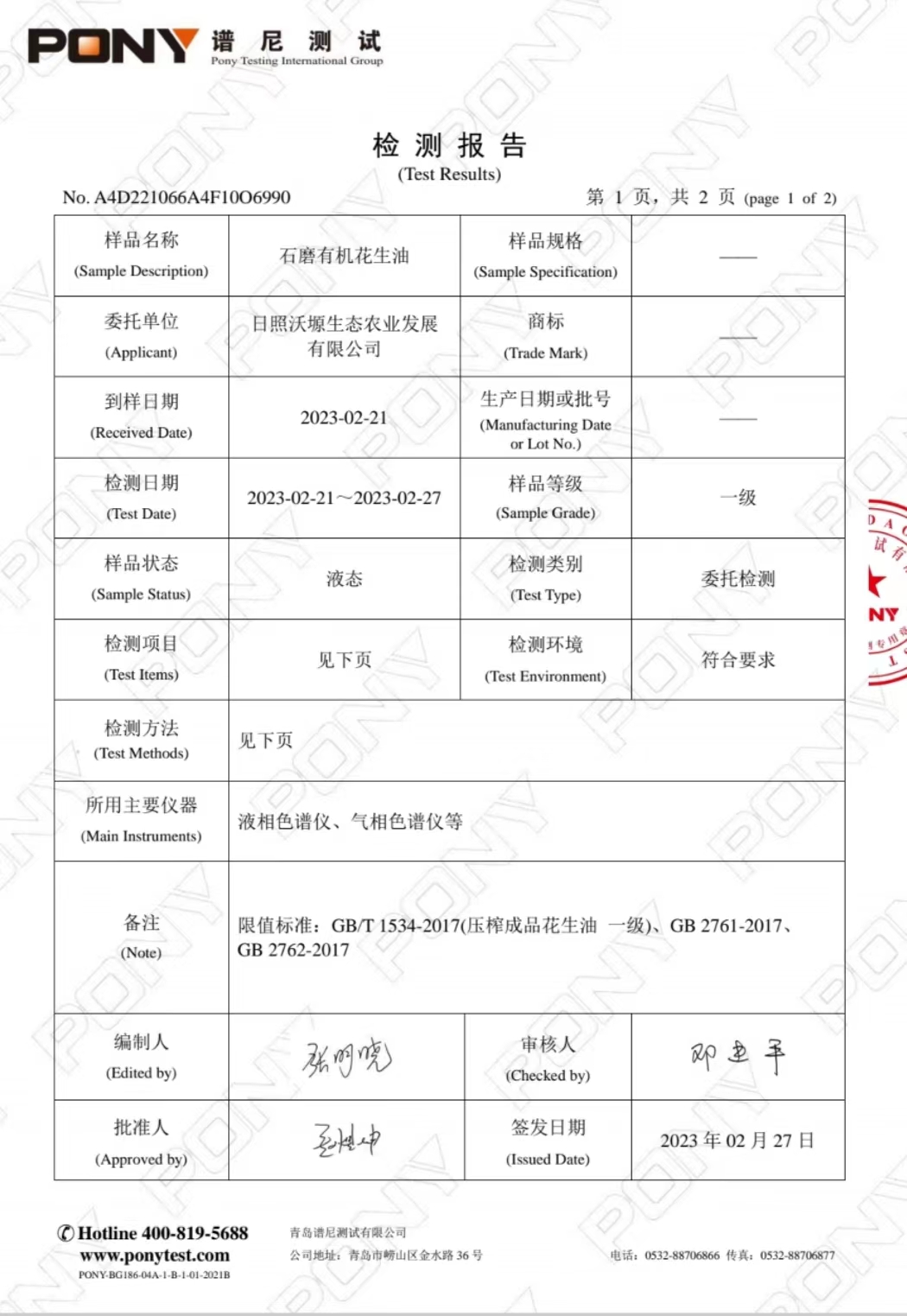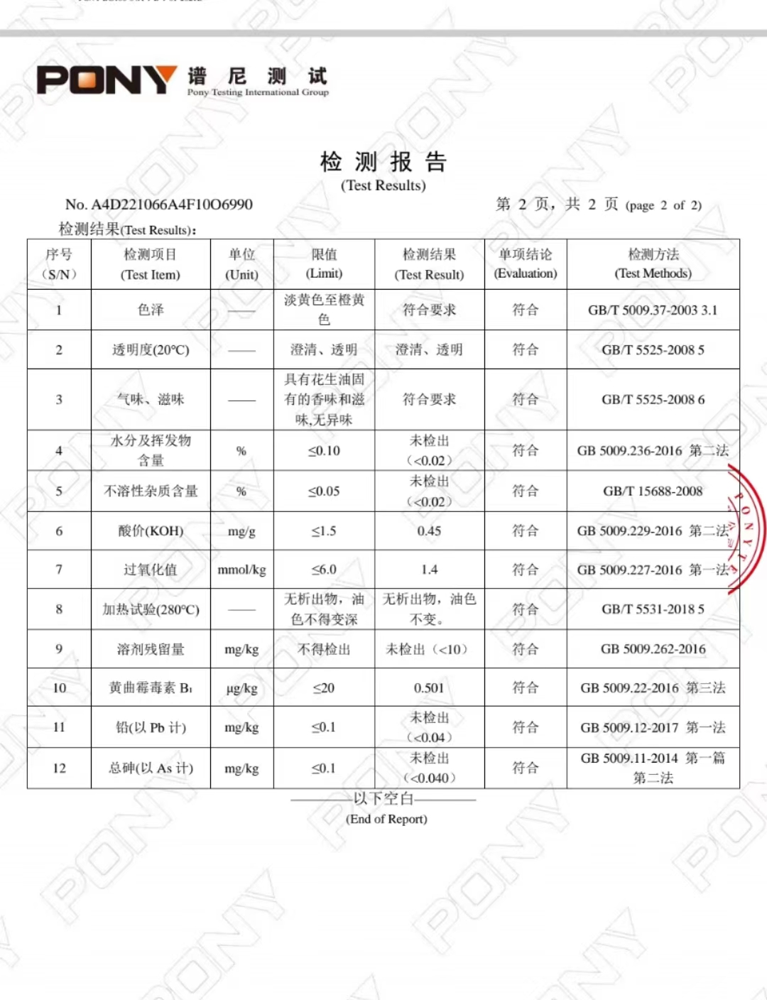 用国际检测机构谱尼,按照最好级别花生油的检测。全部合格。