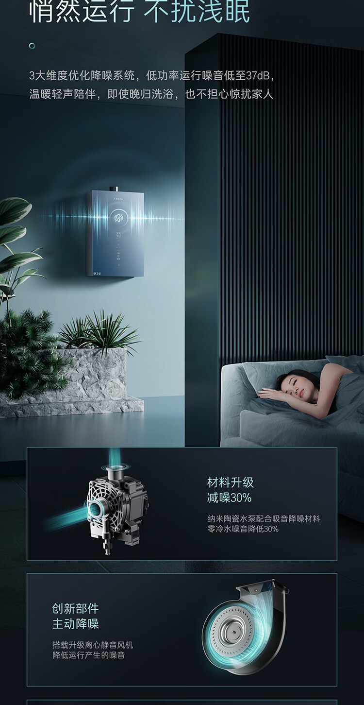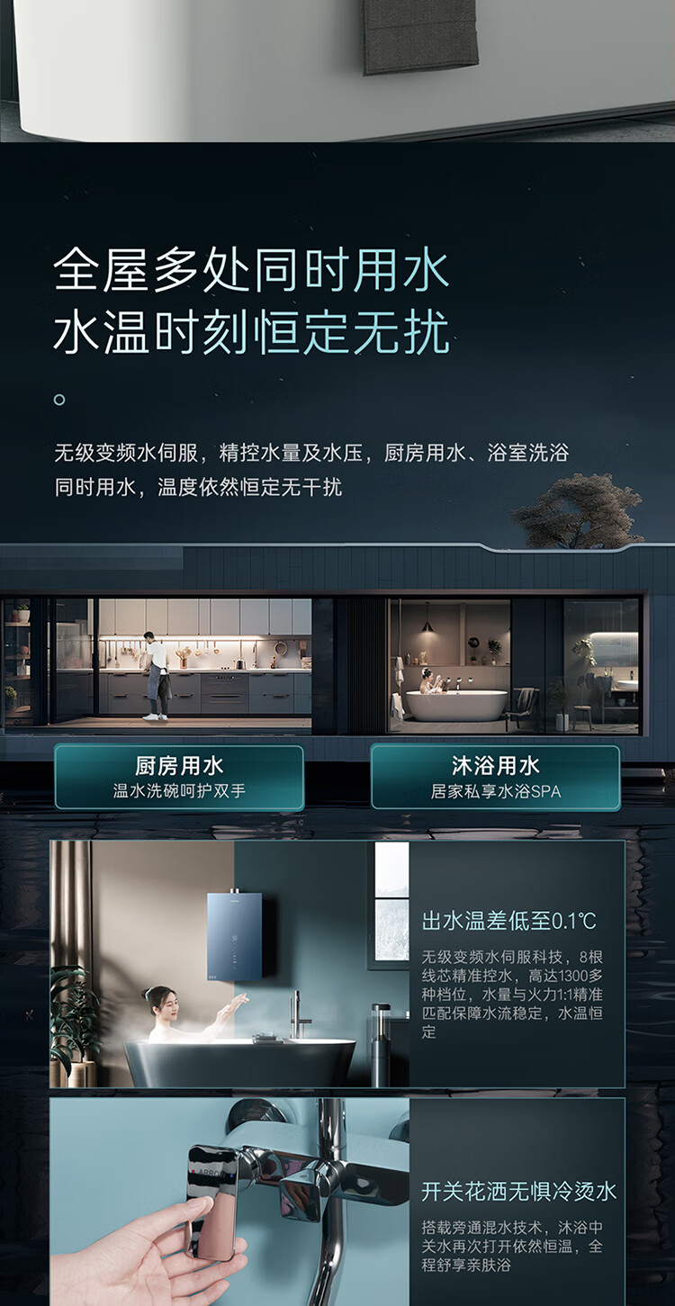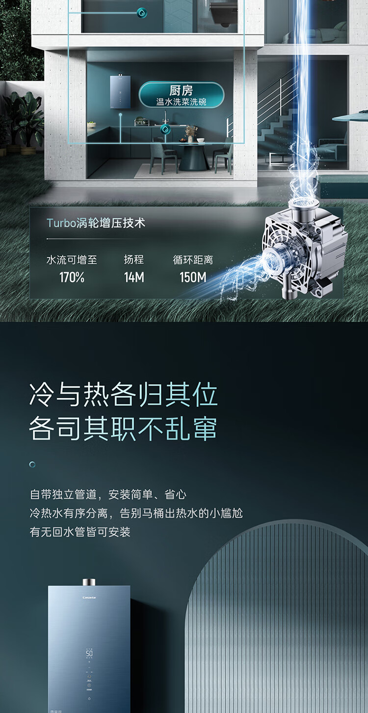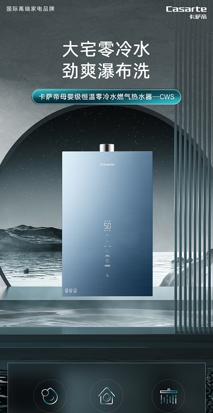卡萨帝(Casarte)鉴赏家20升家用燃气热水器天然气母婴级恒温三管零冷水静音水伺服增压下置风机JSQ38-20CWS(12T)U1