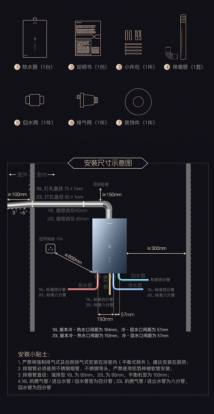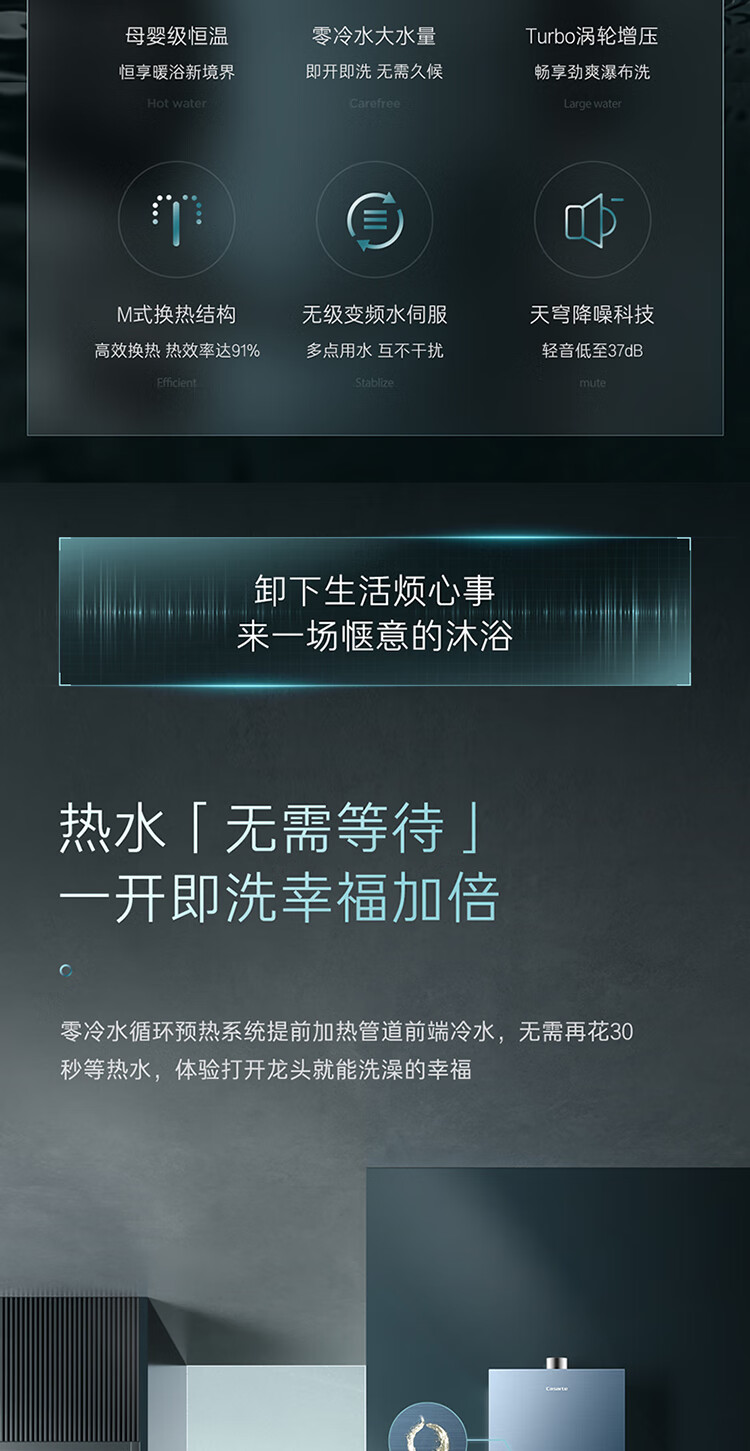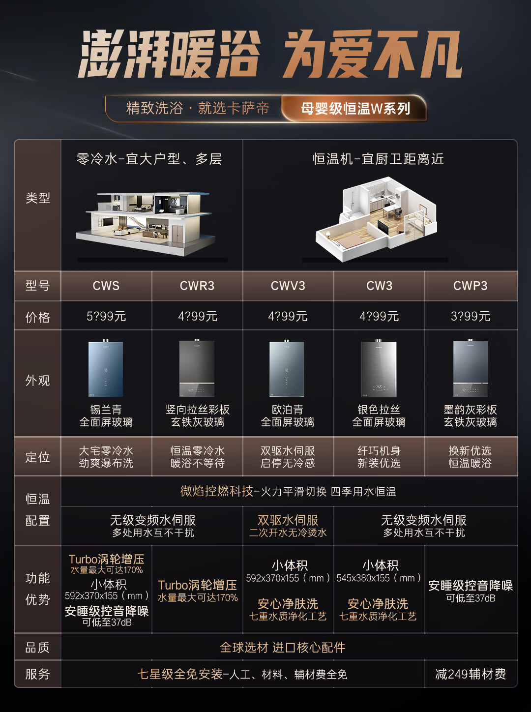 卡萨帝(Casarte)鉴赏家20升家用燃气热水器天然气母婴级恒温三管零冷水静音水伺服增压下置风机JSQ38-20CWS(12T)U1