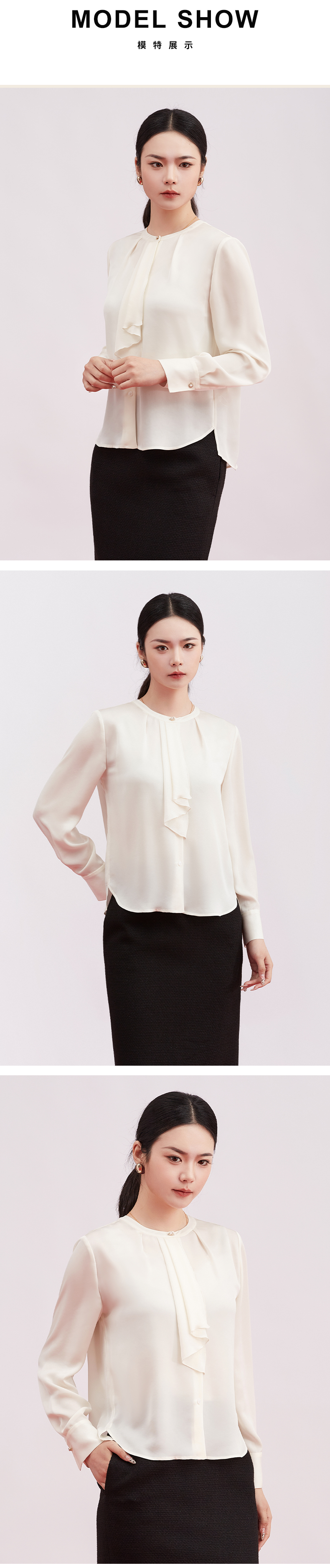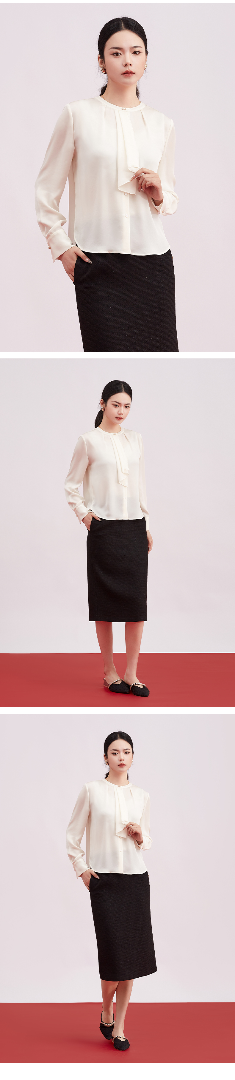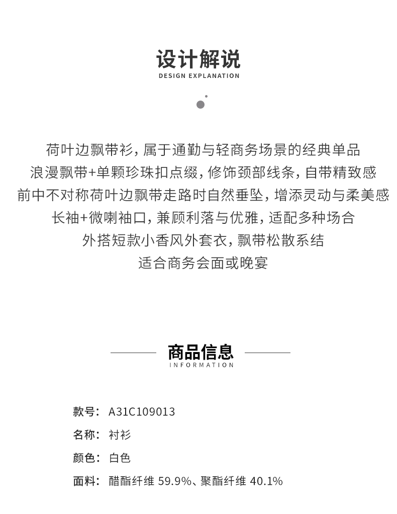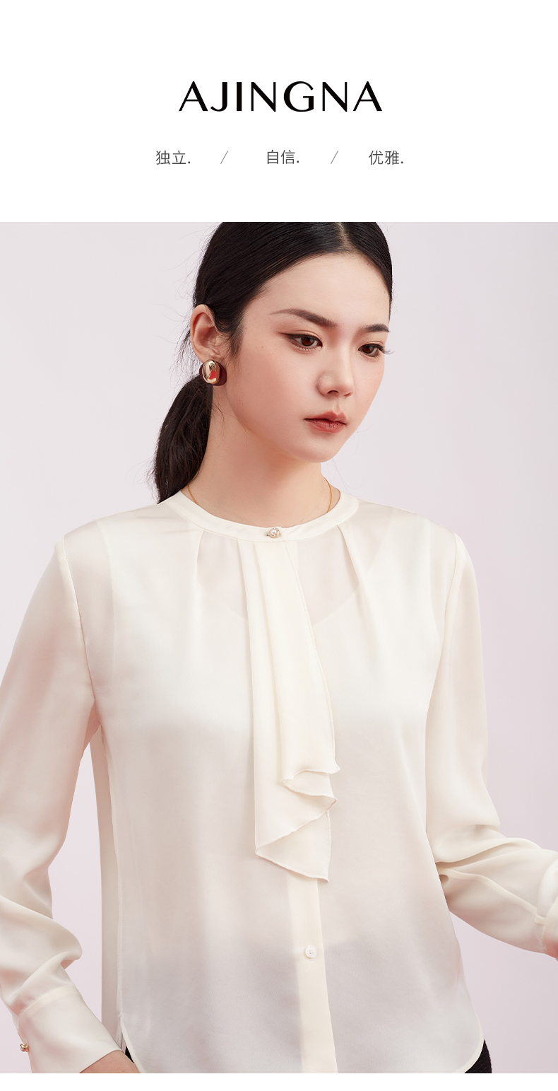 【商场同款】阿菁娜春季新款飘带衫不对称荷叶边珍珠扣点缀精致灵动柔美A31C109013