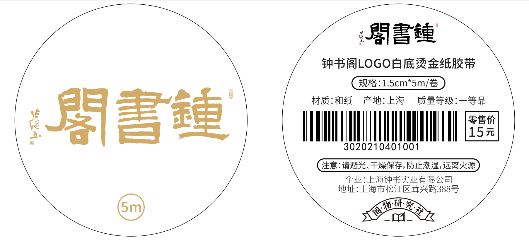 钟书阁LOGO白底烫金纸胶带半透明和纸胶带
